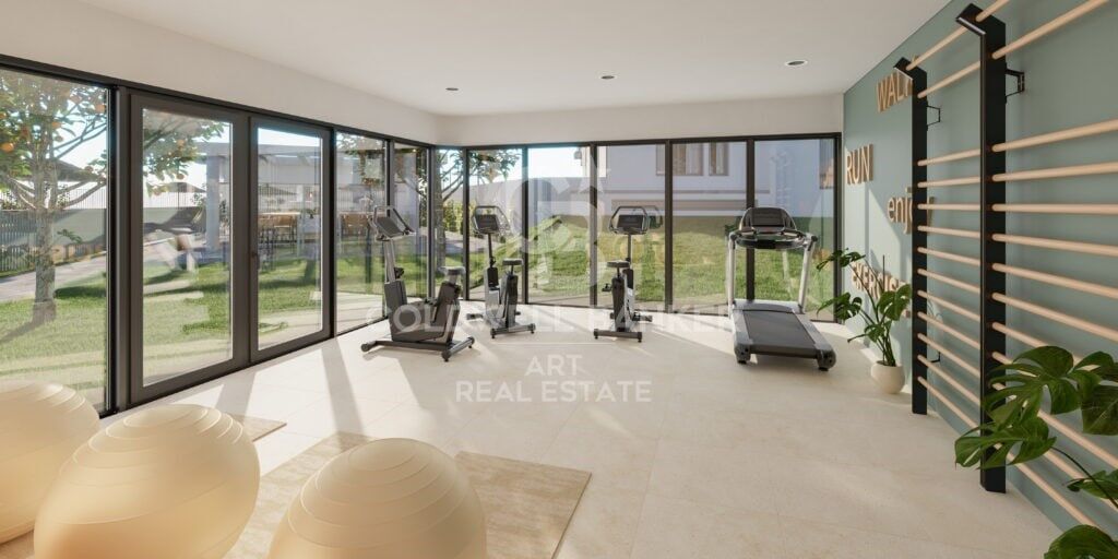 The development has excellent garden areas, a communal pool, a gym and a social-gourmet room. The ground floor apartments have a garden and the penthouses have large terraces.