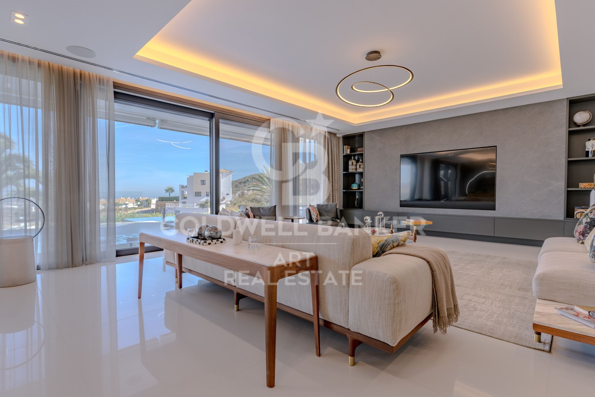 This luxurious contemporary villa boasts 832 m² of built space, offering 650 m² of refined interior living and a 107 m² underground level.
