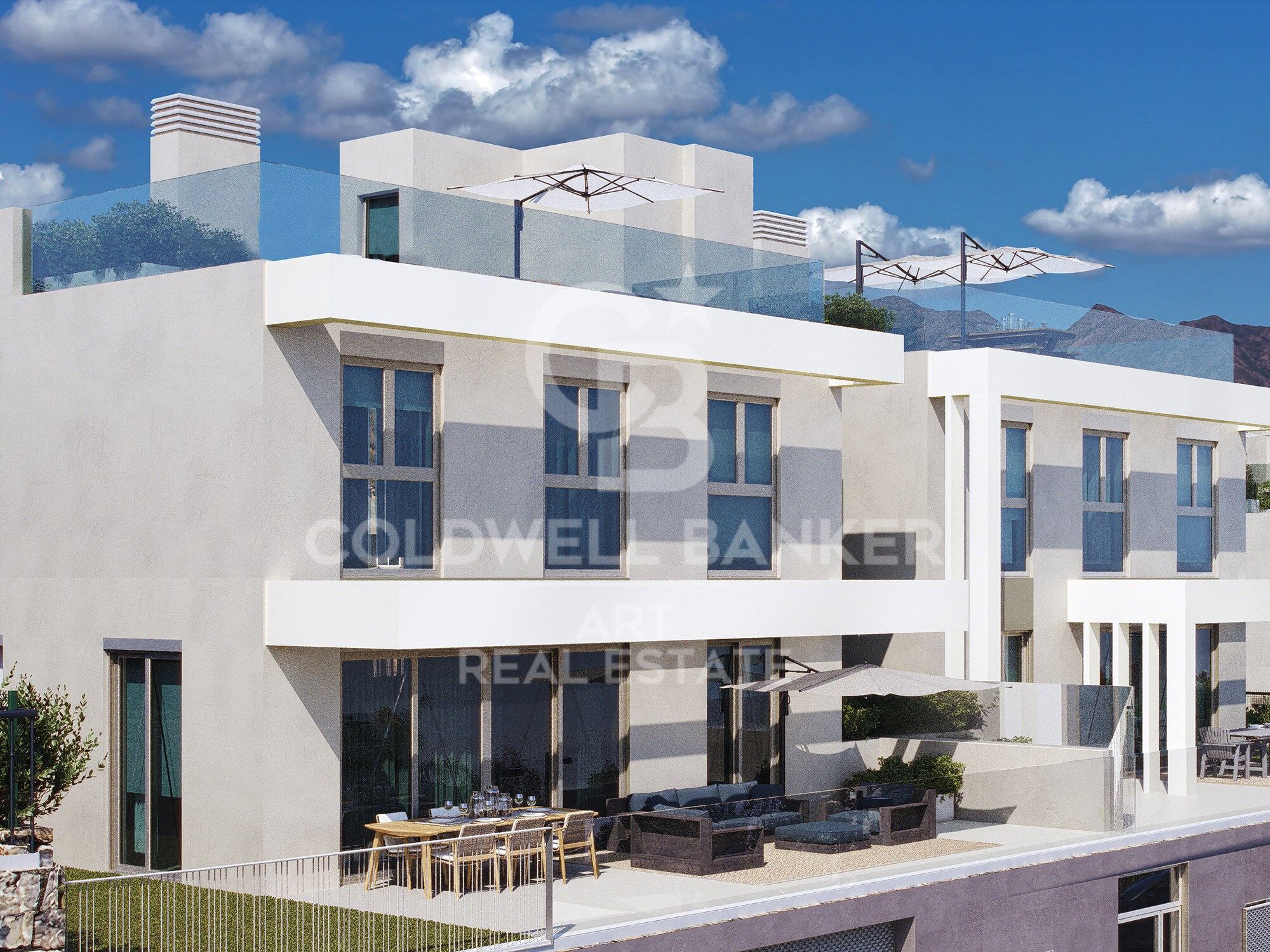 Each villa is distributed over several levels with a carefully planned layout that optimizes space and functionality. Some properties feature private solariums, while others include integrated solar panels, improving energy efficiency. All homes come with two private parking spaces in the garage.
