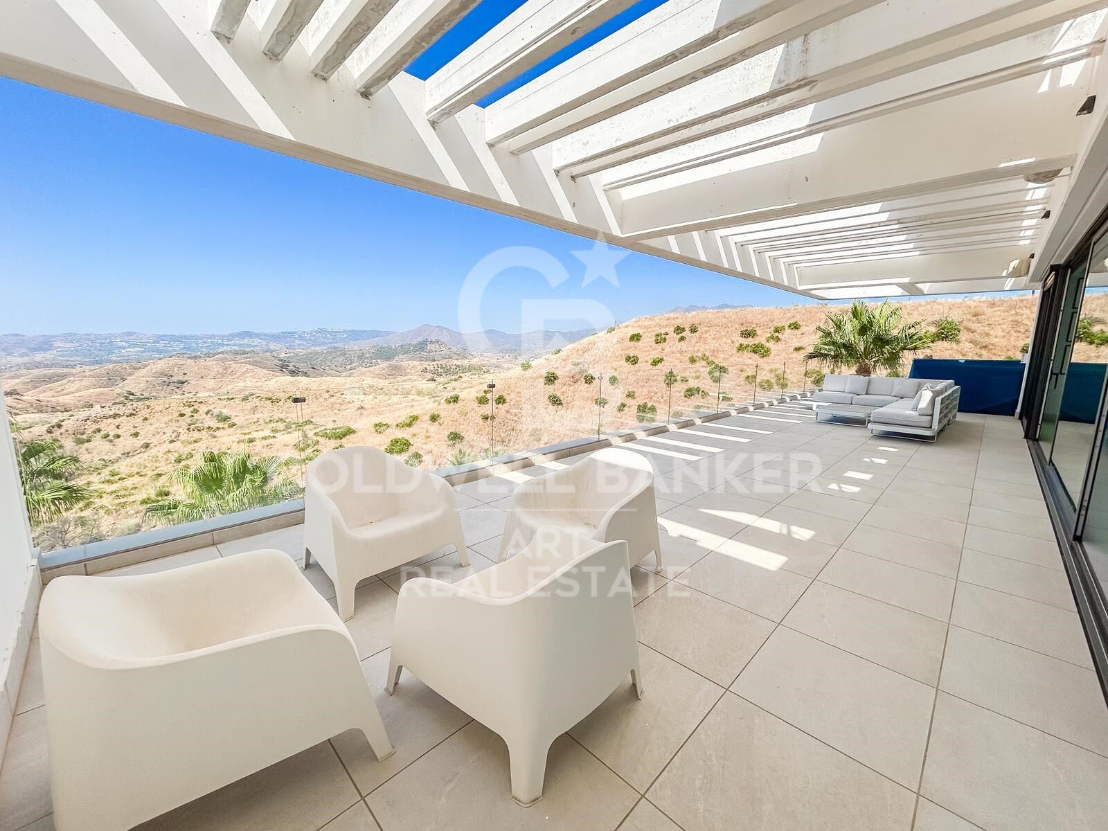 Located in one of the quietest and most desirable areas of Marbella, this penthouse represents a perfect fusion between contemporary luxury, nature and Mediterranean lifestyle. Located in the elegant Sunset urbanisation, in Artola Alta, this property offers privacy, comfort and a direct connection to the natural environment that surrounds it. From its large terrace you can enjoy a breathtaking panoramic view that encompasses the Mediterranean Sea, the bay of Marbella and the mountains. The views, both during the day and at sunset, are truly unforgettable and make every moment at home a unique experience. Inside, the house stands out for its modern and functional design. The main living room is spacious and bright, with a designer fireplace and direct access to the terrace. The open-concept kitchen is equipped with high-end Gaggenau appliances and has an integrated wine cellar, ideal for lovers of good living. The master bedroom has an en-suite bathroom and sea views, while the two guest bedrooms also have their own private bathrooms and lovely views. In addition, there is a guest toilet for greater comfort. The house is completely surrounded by vegetation, which guarantees an atmosphere of peace and privacy. A few minutes' walk away is the Cabopino golf course, restaurants, a local shop and pharmacy. Marbella centre is just a 15-minute drive away, and Malaga International Airport is around 30 minutes away. Nearby you will also find renowned international schools, protected natural landscapes and exclusive beach clubs. The penthouse is delivered fully furnished and ready to move into. It includes two underground garage spaces and a storage room. The exterior has been carefully designed as a natural extension of the Mediterranean lifestyle. The main terrace, on the same level as the living room, has a large chill out area, barbecue and outdoor dining area. On the upper level there is a private solarium with an infinity pool, an ideal corner to relax with sea views or enjoy alfresco dining. The boutique-style urbanisation with modern architecture offers its residents two communal swimming pools and is within walking distance of the charming marina of Cabopino and the unspoilt beaches of the Dunes of Artola, a protected nature reserve. This property is a unique opportunity for those looking for a sophisticated residence, surrounded by nature and at the same time close to everything. A true refuge on the Costa del Sol. #ref:CBSH901
