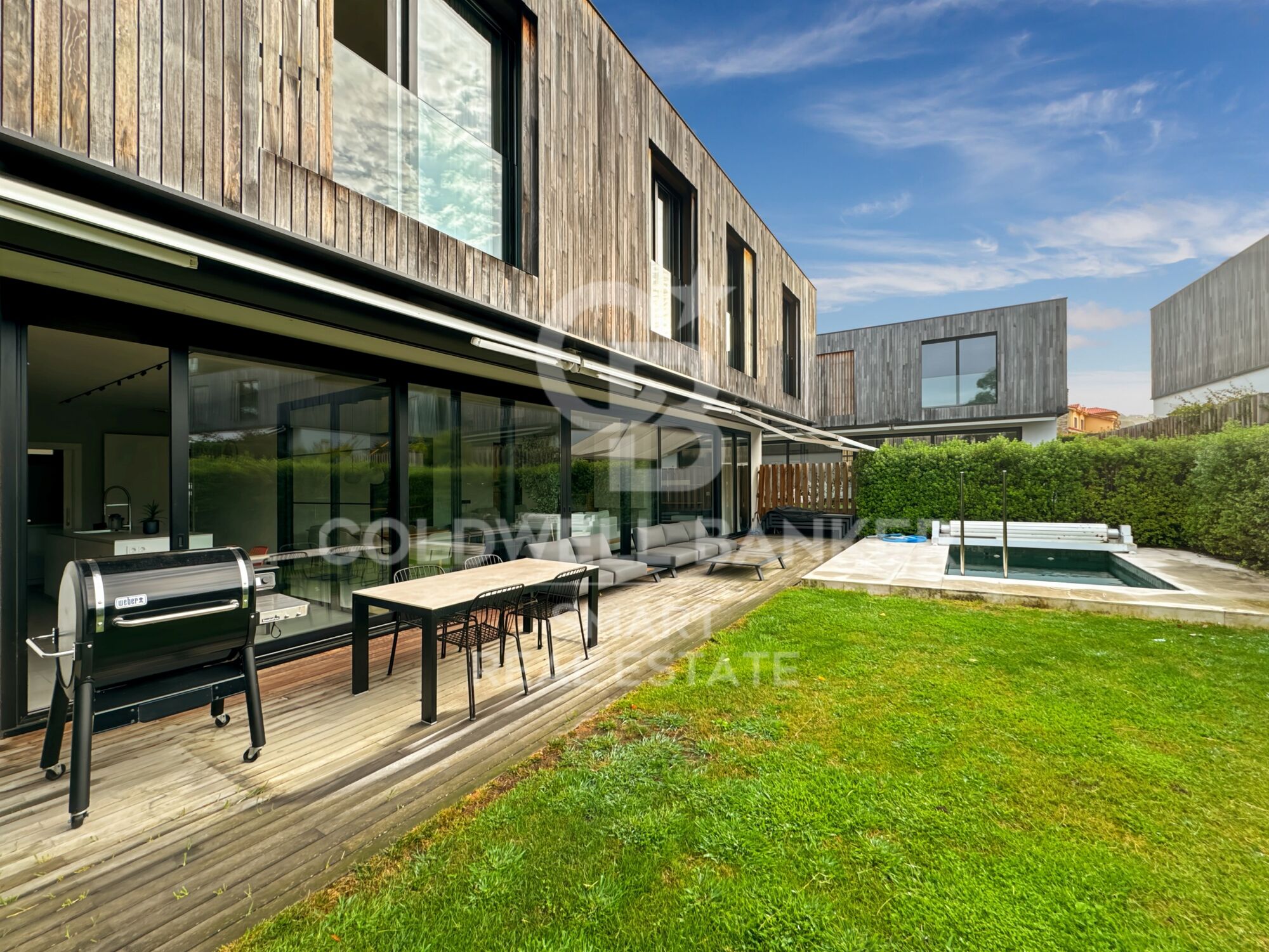 Outside, the house has a covered porch, private garden and its own swimming pool.