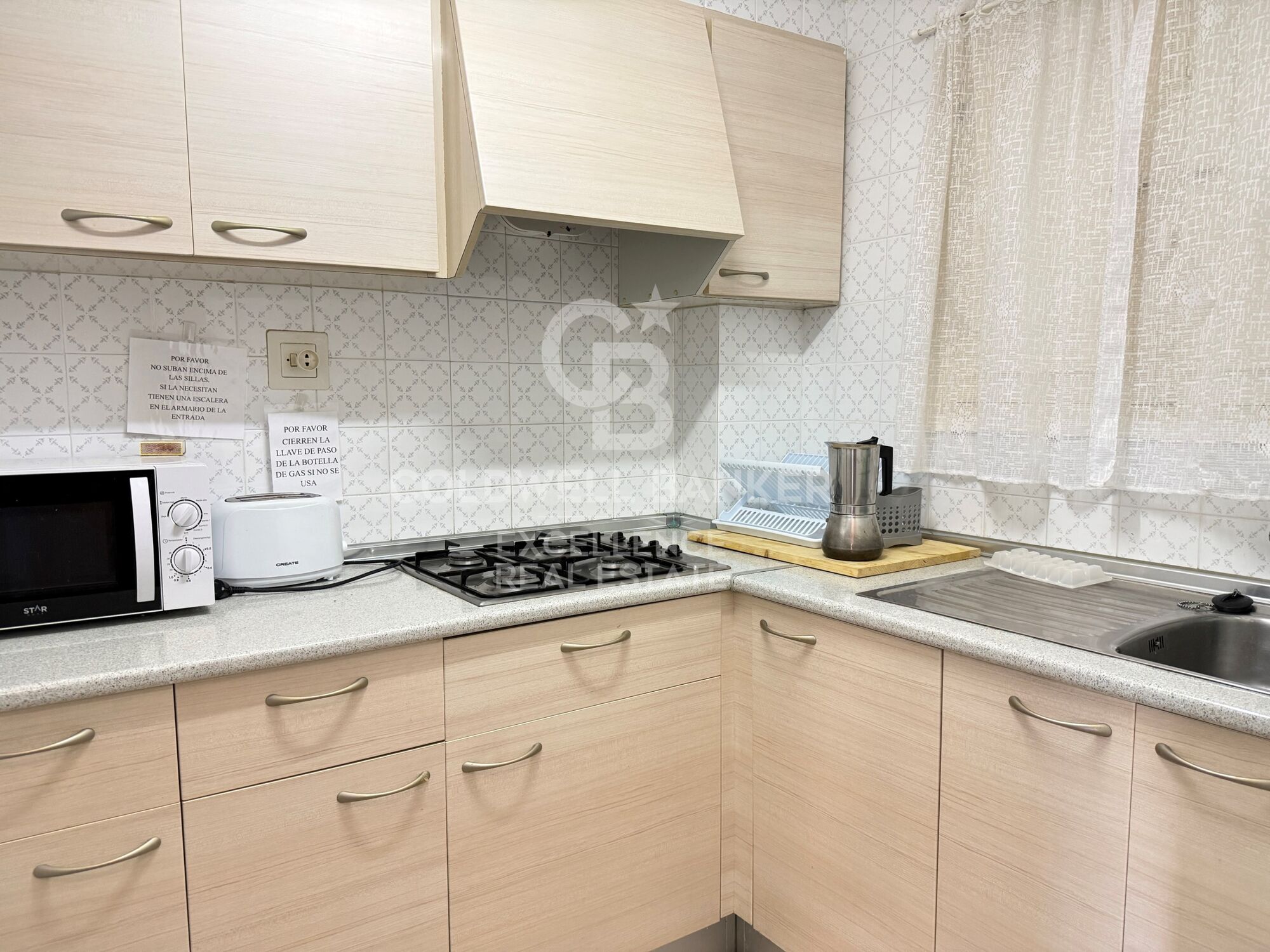 Situated on the second floor (no elevator) and in good condition, the property offers 67 m² perfectly distributed. It features two spacious double bedrooms, a fully equipped kitchen, a complete bathroom, and a bright living-dining room with access to an east-facing outdoor terrace that guarantees natural light and pleasant open views. Its orientation and natural ventilation provide freshness and comfort throughout the year.