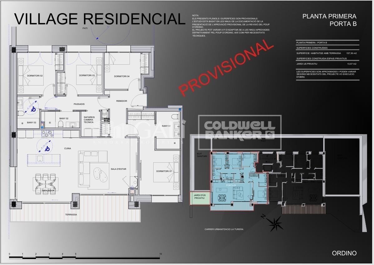 New development in the Ordino area, in the Turera residential area, close to the center of Ordino, yet free from traffic.~~This property has four bedrooms, two of which are en-suite. There is also a third bathroom to serve the other two double bedrooms.~~It features a large living-dining room with an open-plan American-style kitchen.~~It also includes a laundry area.~~The ground floor apartments have private access to their storage units, and the penthouses also have access, but in this case via a private elevator. The kitchen, dining room, and master bedroom are well-oriented, facing southwest. The other secondary bedrooms face northeast.~~Among other features, the following stand out:~Triple-glazed windows with motorized aluminum blinds~MVHR (Mechanical Ventilation) system for continuous and controlled air renewal~Underfloor heating via aerothermal system~Kitchens equipped with Siemens appliances.~~Start of construction: scheduled for April 2026.~Completion: two years after the start date.~The development is located in a quiet area with little traffic, as the road is exclusive to the development and is not a through road, and you could even walk to the center of Ordino.