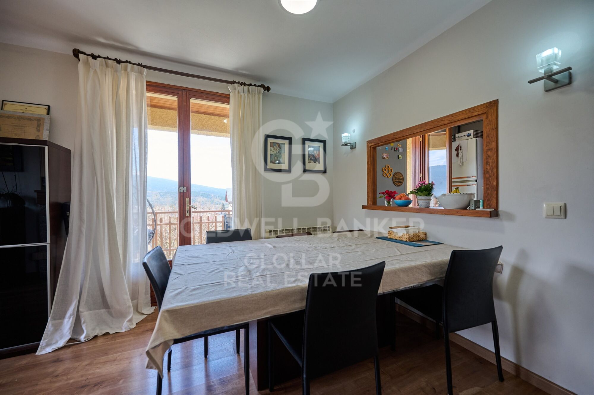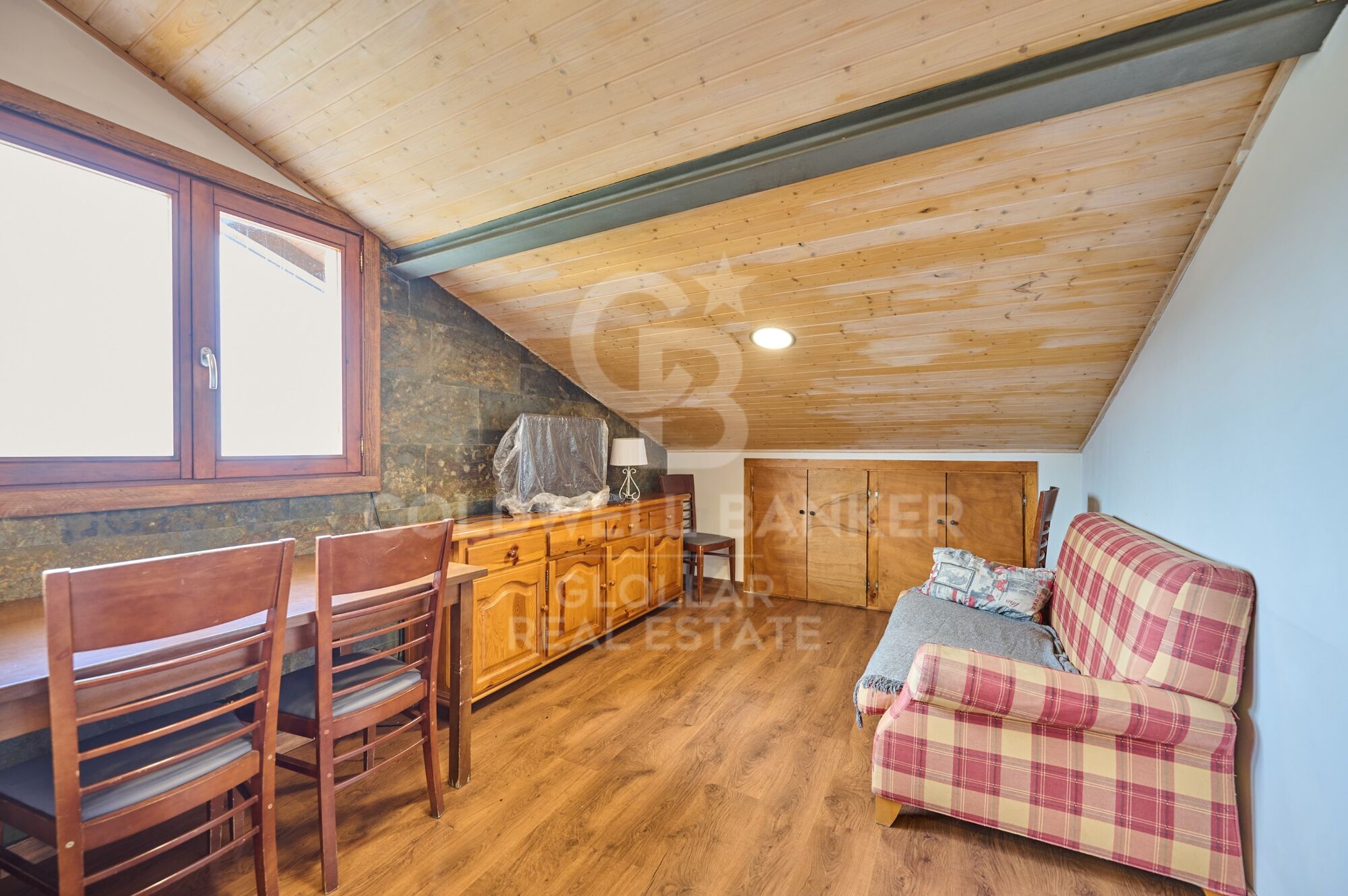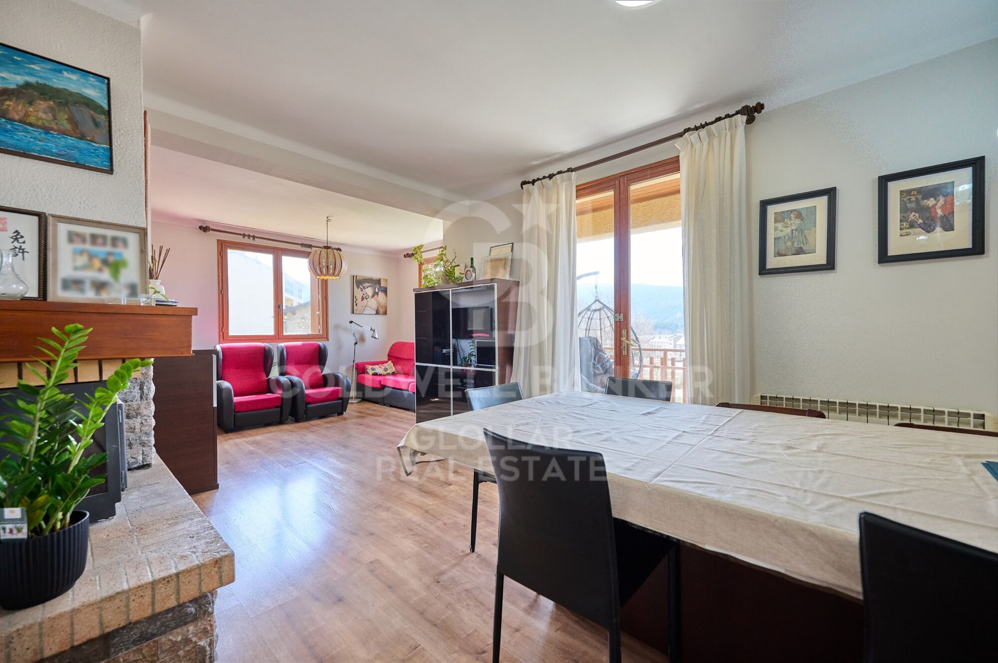 Encantadora casa independiente en venta en el bonito y tranquilo pueblo de Osséja, ubicada sobre una parcela de 640m² que ofrece múltiples posibilidades para disfrutar al aire libre, gracias a su espacioso jardín, ideal para el descanso o el juego y una práctica zona de barbacoa perfecta para reuniones familiares o con amigos. La vivienda se distribuye en tres plantas y ha sido inteligentemente dividida en dos apartamentos independientes, lo que la convierte en una opción muy versátil, ideal tanto como vivienda principal o secundaria para una gran familia, como para aquellos que buscan una inversión con potencial de rentabilidad mediante alquiler vacacional o de larga duración. En la planta inferior se encuentra un amplio garaje con acceso directo al interior de la vivienda, así como una zona de trastero, lavadero y despensa, muy útil para el almacenamiento y organización del hogar. Desde esta planta se accede al primer apartamento, que destaca por su luminoso salón comedor con chimenea y salida directa a un balcón que ofrece vistas despejadas, una cocina independiente tipo office y con barra pasa-platos al comedor, tres cómodas habitaciones, un baño completo y un aseo de cortesía. En la planta superior, con entrada totalmente independiente y techos abuhardillados que aportan un toque de calidez y carácter, encontramos el segundo apartamento, compuesto por un acogedor salón comedor con estufa de pellets, cocina abierta al comedor con barra pasaplatos, tres habitaciones, un baño completo y otro aseo de cortesía.