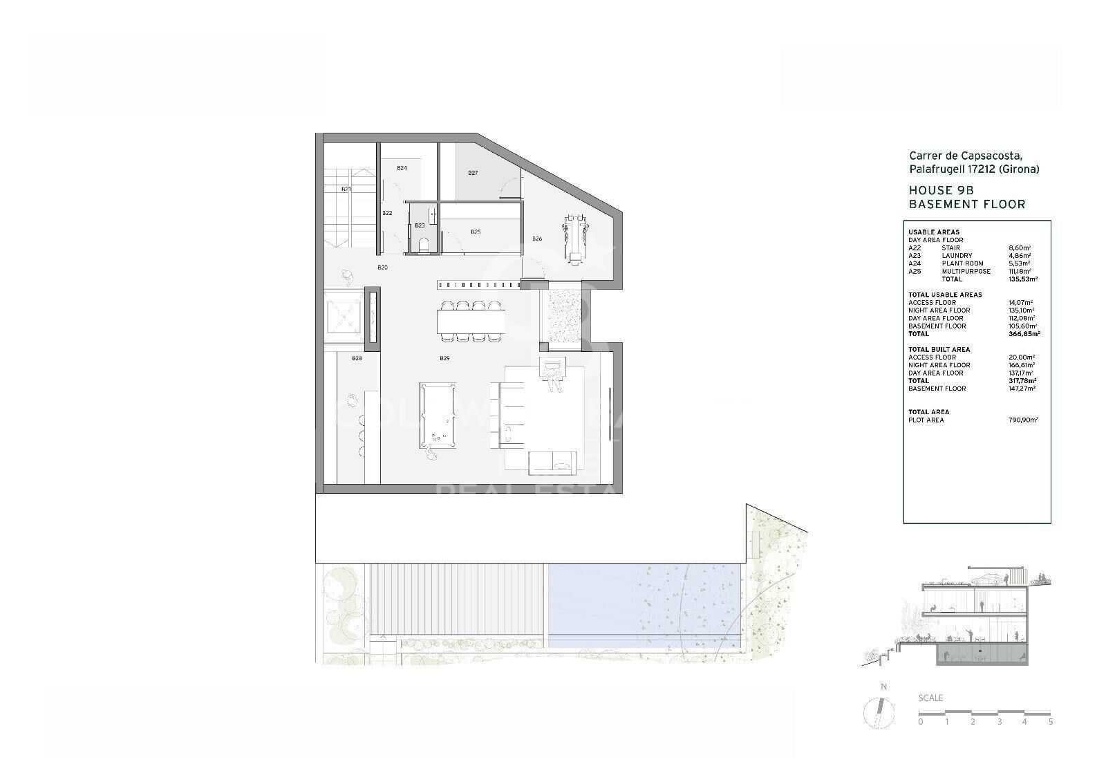 Splendid newly built detached house, close to the magnificent Cala de Aiguaxelida, Tamariu. This project, called Sa Xelida, consists of several detached and semi-detached homes that embody the best of the Mediterranean lifestyle. This dream property boasts a total living area of 445 m², situated on a generous 2,000 m² plot, offering spacious and luxurious living spaces with a panoramic view of the stunning surrounding landscape. Comfort is a priority, and each of the five en-suite bedrooms features a bathroom to ensure maximum privacy and comfort. On the main floor, there is a spacious living room, a dining room, and a modern, fully equipped kitchen with all the necessary conveniences. Additionally, on this same floor, there is a spectacular infinity pool on several levels, along with a beautiful terrace, perfect for enjoying unique sea views. The lower level of the house has a gym, sauna, cinema room, and billiards area. There is also an air-conditioned wine cellar and a machine room. Additionally, there is a laundry room and a guest bathroom. The property offers ample parking space, accompanied by a spacious storage room. This luxury new-build property in Tamariu is a reflection of the Mediterranean lifestyle at its best, ideal for those looking to enjoy the best that life has to offer. There are other single-family properties available with delivery 2027 House nº2 - 3.120.000€. House nº3 - 3.300.000€. House nº4 - 3.450.000€. House nº5 - 3.780.000€. House nº6 - 3.880.000€. House nº7 - 3.720.000€. House nº10 - (SOLD) #ref:CBPL1761