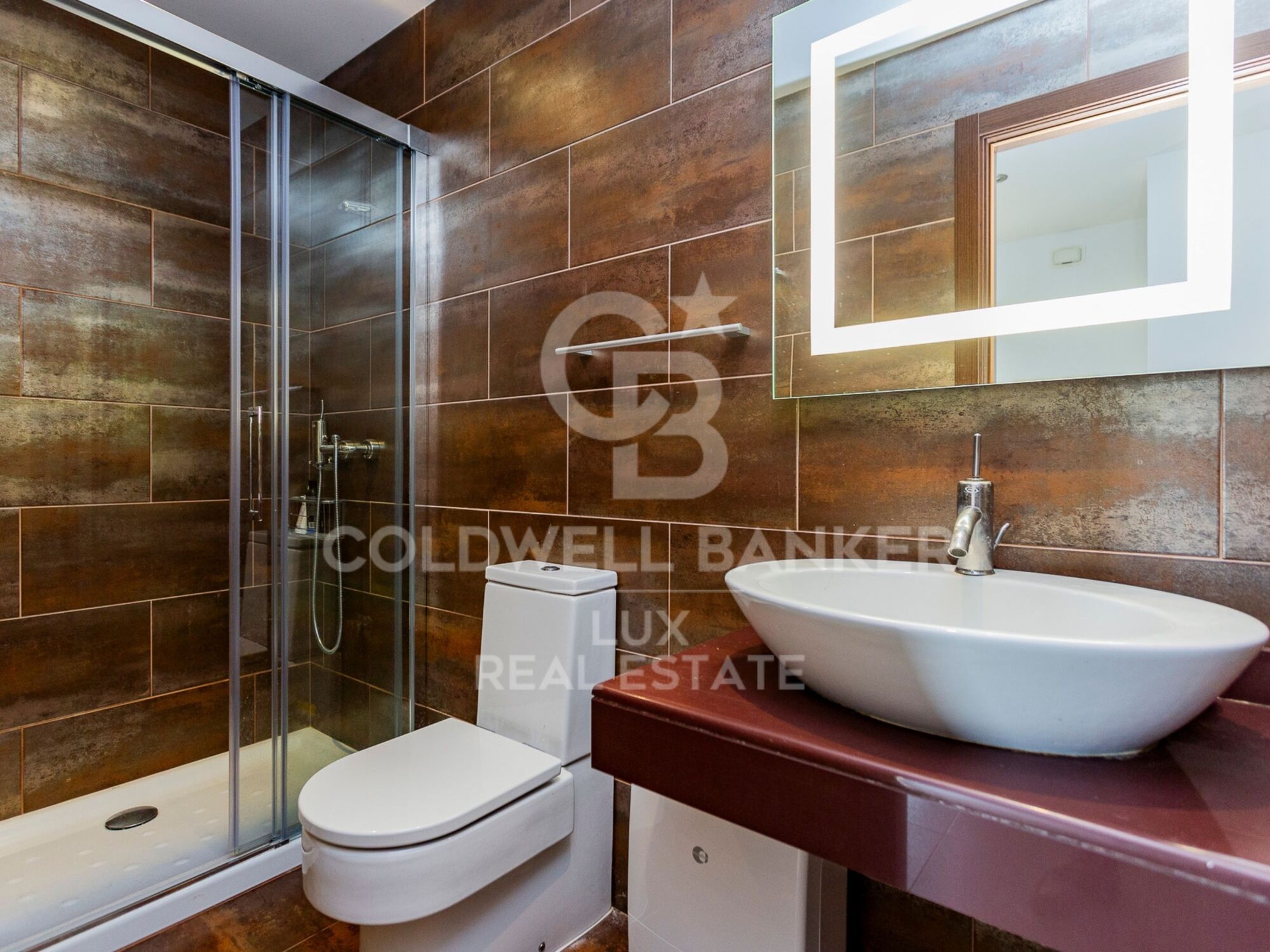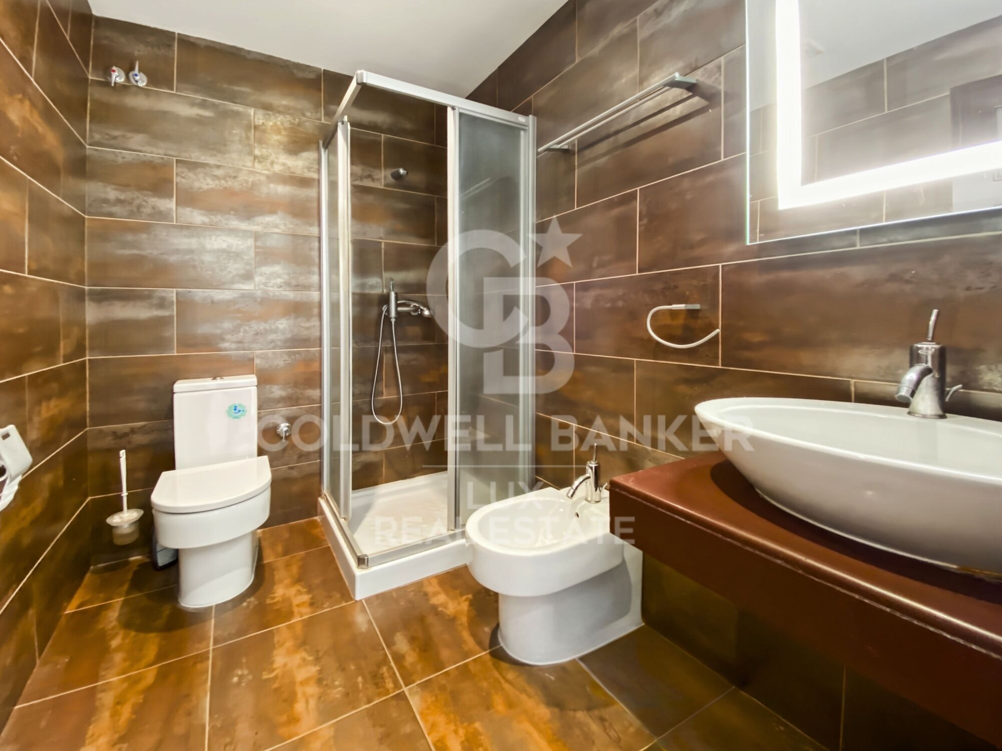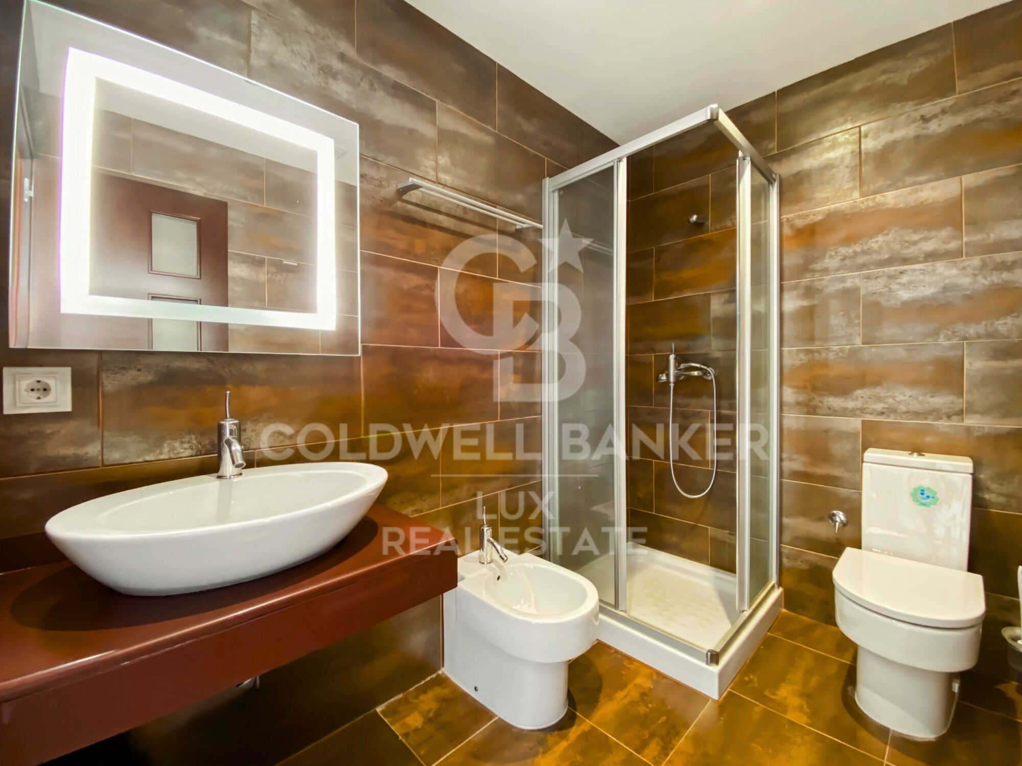 On the ground floor, you will find a cozy living room with a fireplace, a bright dining room with access to the independent and fully equipped kitchen with SIEMENS appliances. In addition, a double bedroom, a full bathroom with shower, and a two-car garage with direct access to the house. On the same floor is the indoor pool with large windows. A small gym (which could be converted into another bedroom) completes the ground floor.