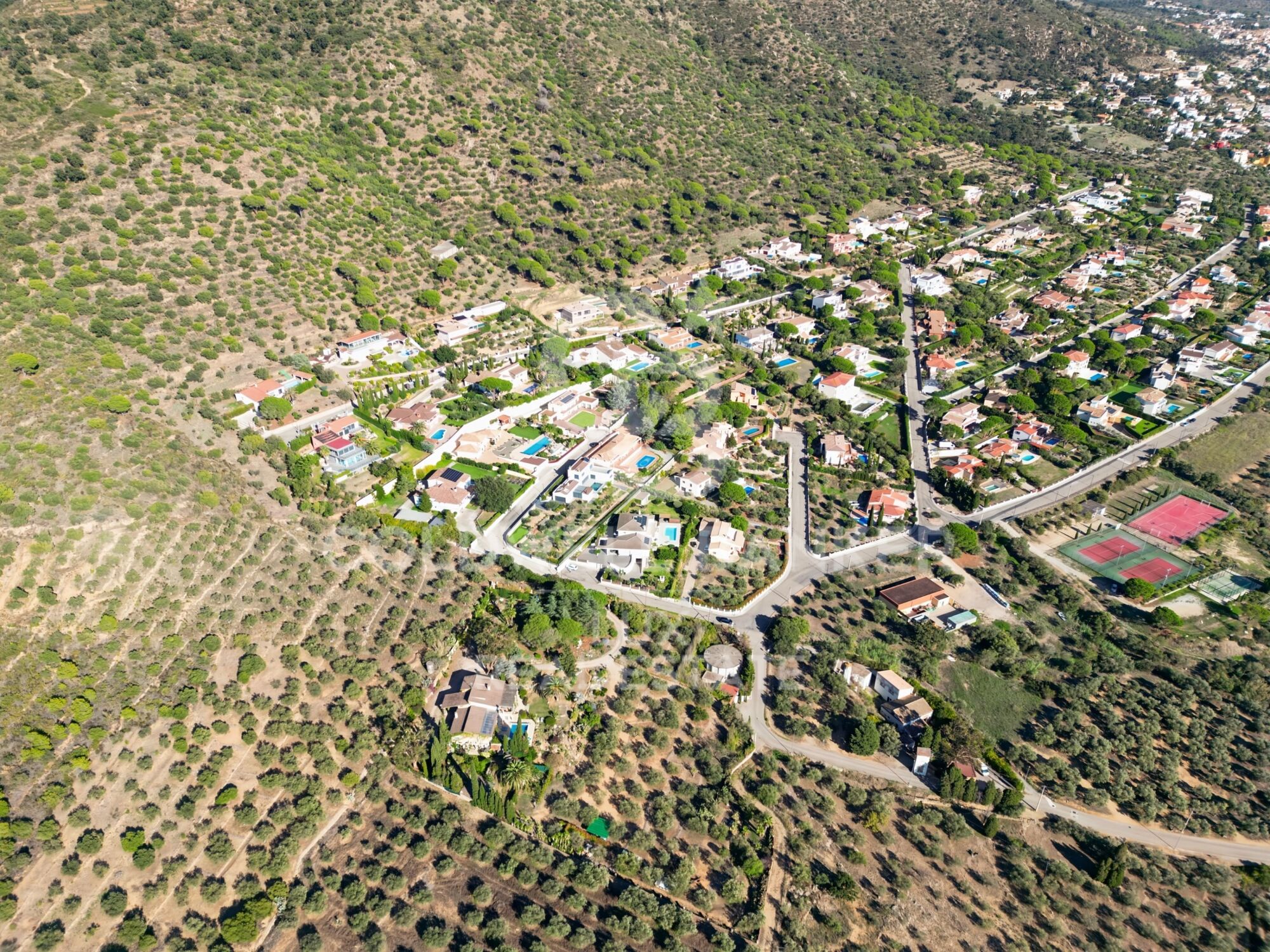 Located in the hills of the residential neighbourhood of Els Olivars in Pau, this property covers nearly one hectare of land planted with olive trees and enjoys a peaceful, natural setting with views of the plains and the sea.