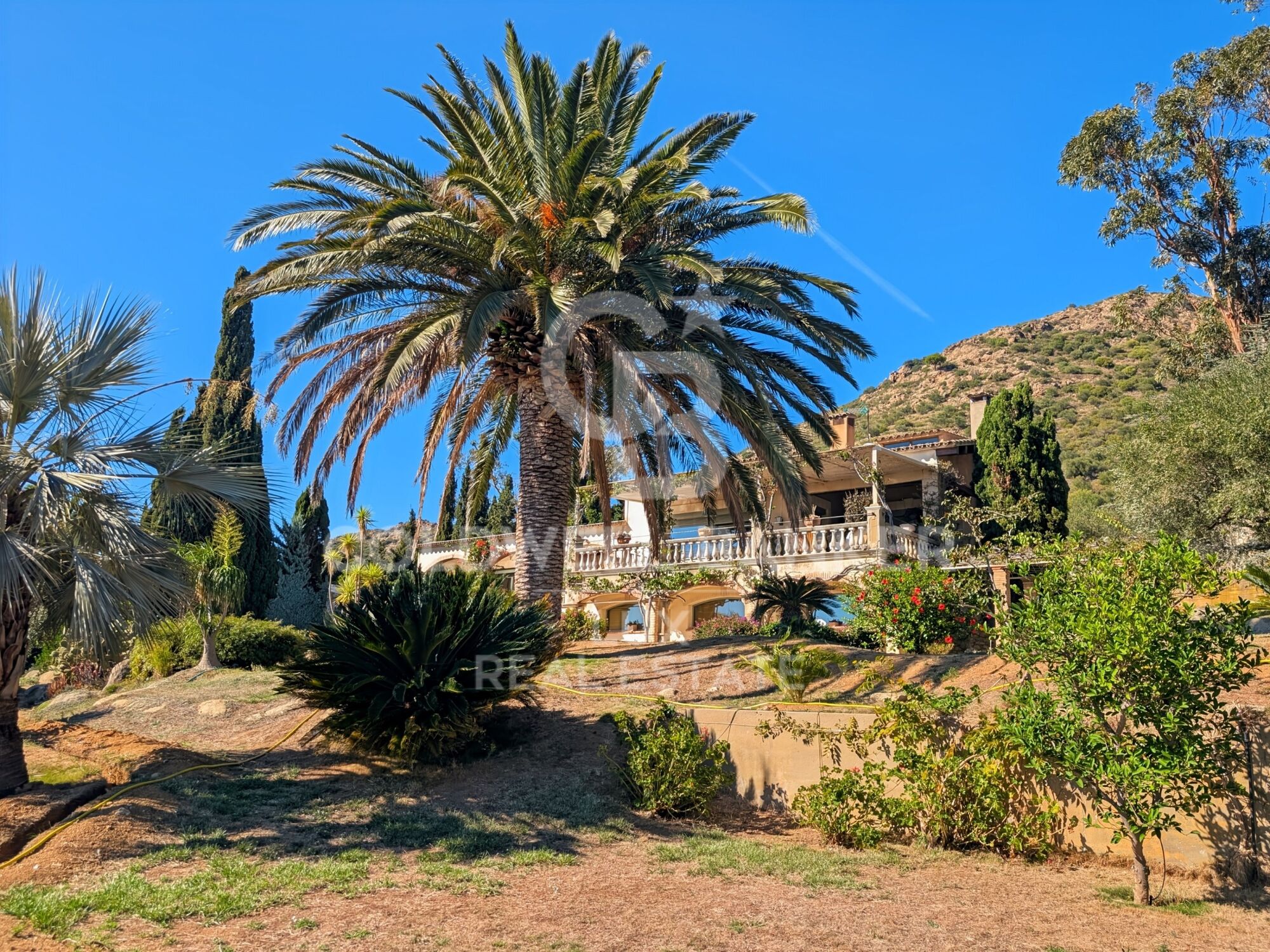 Located in the hills of the residential neighbourhood of Els Olivars in Pau, this property covers nearly one hectare of land planted with olive trees and enjoys a peaceful, natural setting with views of the plains and the sea.
