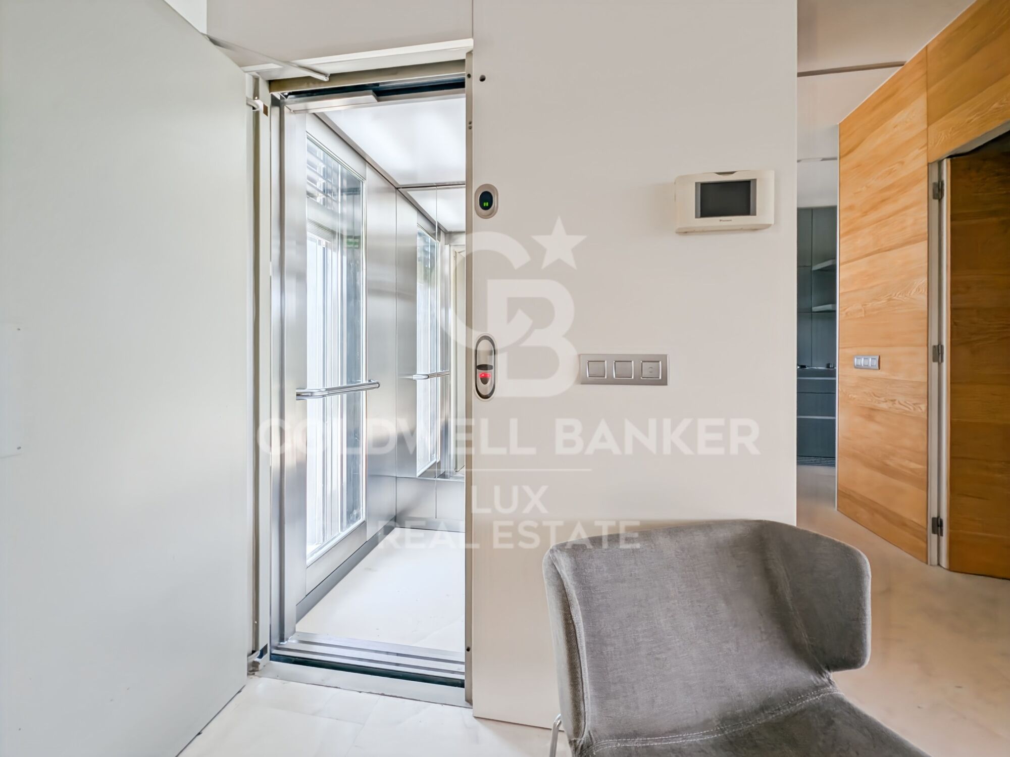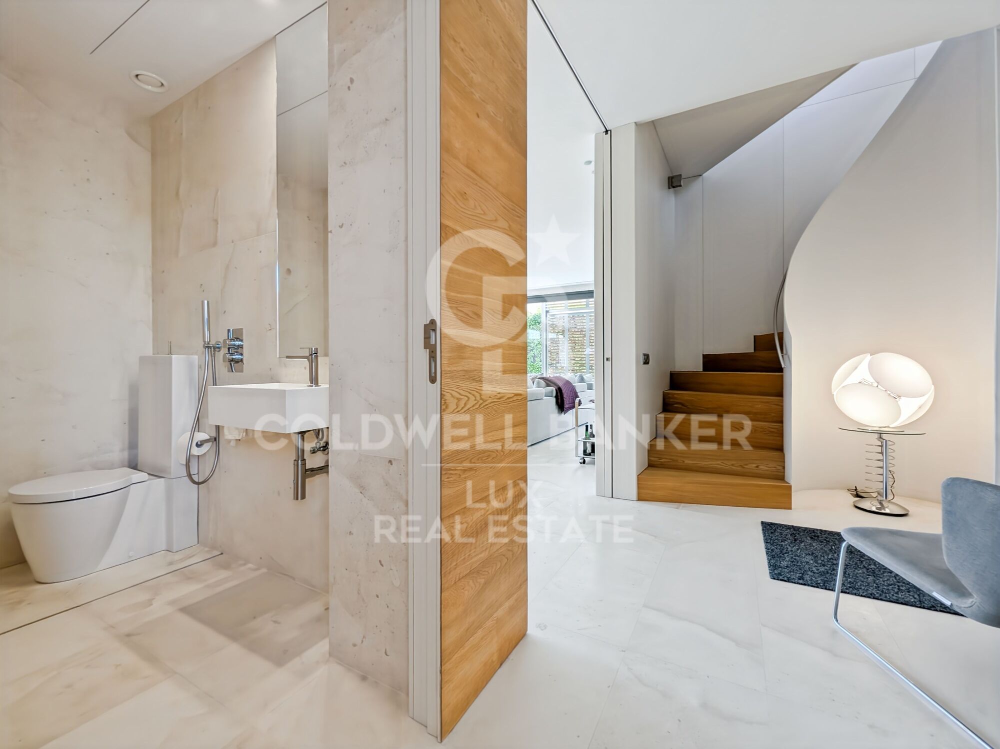 The property also has a laundry room, service area and a closed garage with capacity for four vehicles. It is equipped with heat pump underfloor heating, reversible air conditioning, alarm system, natural stone and parquet flooring, and automatic irrigation in the garden. The solar panels allow for an annual production of around 9,000 kWh.
