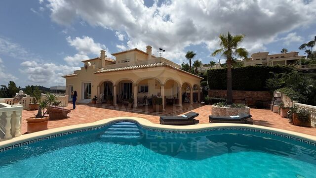 Villa Siri - An exceptional project with an Andalusian soul, signed by KVC Currently in the process of comprehensive renovation by KVC, Villa Siri is an architectural jewel located on the heights of Las Rotas, in Dénia. An absolutely unique location, where the sea, the mountains and the sky meet to offer a daily spectacle of light, calm and beauty. From its terraces you can contemplate golden sunrises and reddened sunsets, with 360° views of the Mediterranean, the Montgó, the illuminated port of Dénia and its historic castle. A breathtaking panorama, which makes this villa a true refuge suspended between nature and sea. With a usable floor area of 630 m², the villa is being reinterpreted with a contemporary Andalusian style, faithful to Mediterranean roots and enriched with noble materials and artisanal details. Travertine marble flooring, hydraulic ceramics, handmade terracotta details, artistic wrought iron railings, ceilings with exposed wooden beams, and exterior carpentry in Technal aluminium with an oxide finish. Each element has been carefully selected to dialogue with the landscape and create an authentic and serene atmosphere. The heart of the house is its impressive Andalusian patio, around which life is articulated: a naya with rounded arches, terracotta pots that brighten up the walls, shaded seating areas and a central pool that merges with the Mediterranean garden and sea views. Here, various outdoor living spaces have been planned: summer kitchen with barbecue, outdoor jacuzzi, corners to read or share, intimate terraces and privileged viewpoints. Inside, the project includes four en-suite bedrooms, all with private bathrooms, as well as an interior and an exterior guest toilet for the pool area. The master suite, located on the upper floor, enjoys a double east-west orientation with sea views from the bed. In order not to interrupt this view, the mirrors in the bathroom, open to the bedroom, have been integrated into the wall and emerge by means of a motorised system. The double-height living room offers spaciousness and natural light, with a large panoramic window at the entrance that frames the landscape like a living work of art. The kitchen open to the living and dining room is a centrepiece of the design: worktops built in work with a terracotta finish, handmade 10x10 cm artisanal tiling, a spectacular curved window overlooking the sea, and Series 8 appliances from BOSCH. Villa Siri will also have a separate laundry area, a closed garage for two vehicles, and a comprehensive comfort system: ducted air conditioning, Smart Home automation, outdoor scenographic lighting and a careful interior lighting with indirect light. For sale turnkey, fully furnished and decorated with selected pieces, this signature residence is offered for €3,600,000, as a unique creation, ready to be lived in. Villa Siri is more than a renovation: it is a revaluation of the Mediterranean soul. A tribute to traditional architecture, reinterpreted with sensitivity, excellence and respect for the place. A work signed by KVC that invites you to dream. #ref:CBS605N