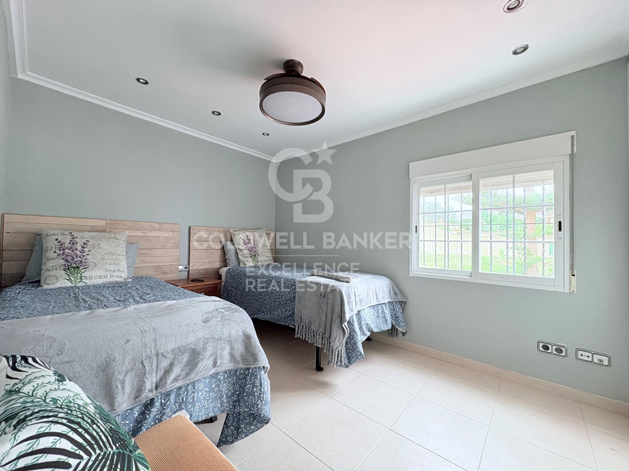 Coldwell Banker Style Real Estate presents this magnificent property located in the prestigious Les Pedritxes residential area of Matadepera, an enclave surrounded by nature and tranquillity. With a plot of 4,000 m², this residence offers maximum privacy and spectacular views of the surrounding forest, creating an ideal environment for those seeking relaxation and comfort in complete harmony with their surroundings. The house, with a built area of 608 m², is distributed over two floors currently configured as two independent dwellings connected internally, allowing for great flexibility of use: ideal for large families, visitors or even for combining living and working. Its sustainable infrastructure guarantees total self-sufficiency thanks to solar panels, a high-capacity generator, a rainwater collection system, a water softener and three 1,000-litre tanks. On the main floor, a spacious 70 m² living room with a wood-burning fireplace and panoramic views creates a cosy and bright space. The area is completed by a fully equipped kitchen, wine cellar, two bedrooms, a full bathroom and an en-suite bedroom with a private bathroom. The upper floor offers a second living-dining room with kitchen, two double bedrooms, a shared bathroom, and a master suite with dressing room. From this floor, stairs lead to an attic/study, perfect as a reading corner or work area. In addition, there is a multipurpose room with a fireplace, currently used as an office and gym. Outside, the private swimming pool is the heart of outdoor life, surrounded by unrivalled natural surroundings, ideal for enjoying unforgettable moments of relaxation and leisure with family and friends. The property also has a garage, which could be converted into an additional room or leisure space according to your needs. This property represents a unique opportunity for those seeking the perfect combination of comfort, sustainability and quality of life in one of the most privileged settings in the area. At Coldwell Banker, we offer you the services of our best estate agents to provide you with professional, personalised and efficient service. If you wish, we can carry out a financing study at no cost. Do not hesitate to contact us to discover your next home in Les Pedritxes! #ref:CBMT703
