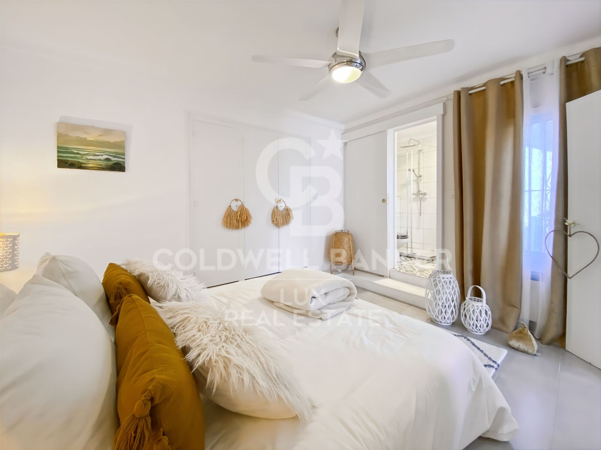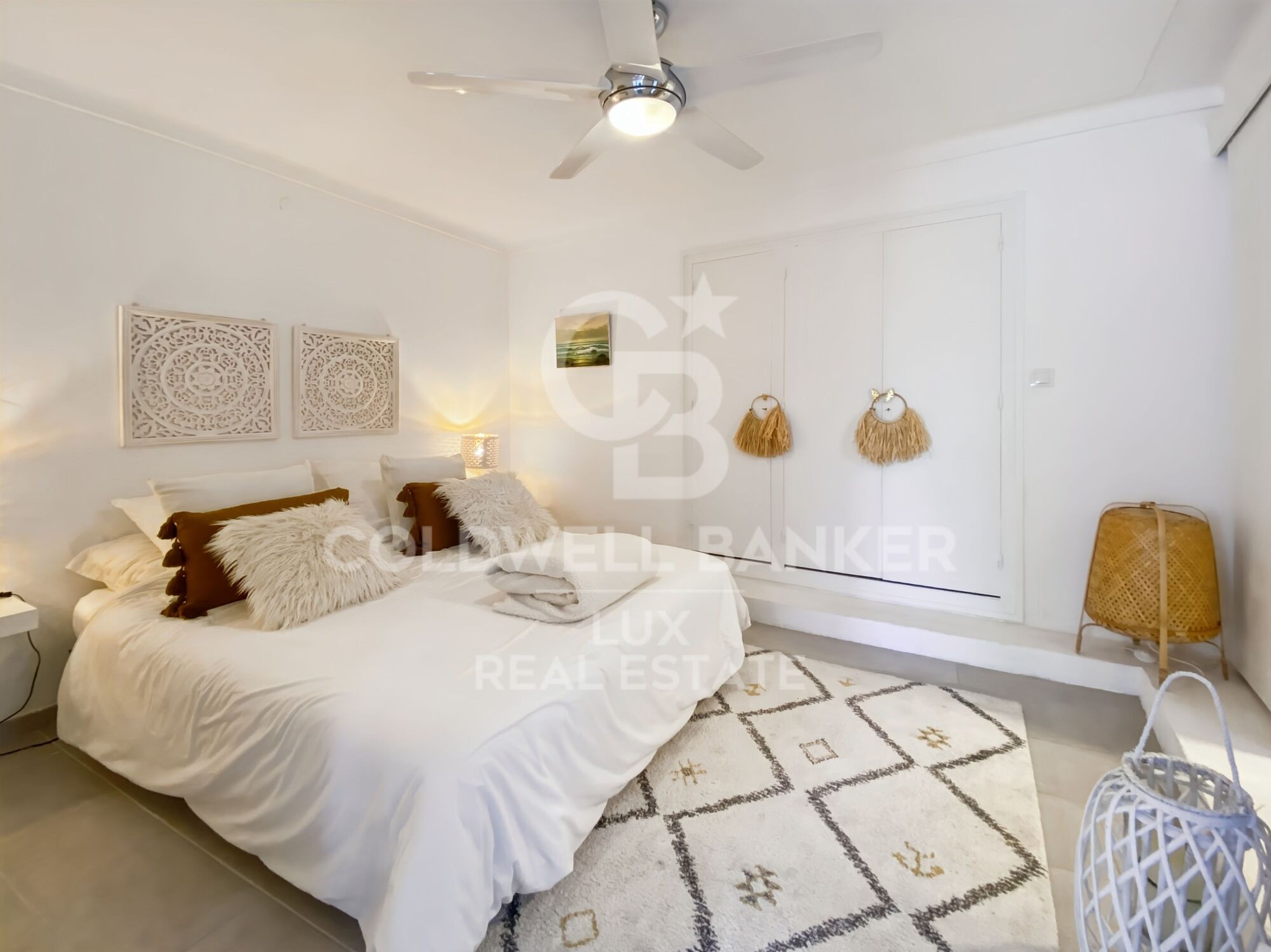 The house consists of one floor for the main living area and another one for the solarium. In the living area, you will find two double bedrooms, one of them en suite with its own bathroom, as well as a shower room with separate toilet. The living room, very bright thanks to its large windows, allows you to enjoy sea views. The open plan kitchen with central island has new appliances and access to a balcony. On the same level, a nice terrace with chill-out area and barbecue gives access to the main solarium of almost 60m2. From here you will also discover sea views, a Jacuzzi, a pergola and two water and electricity connections.