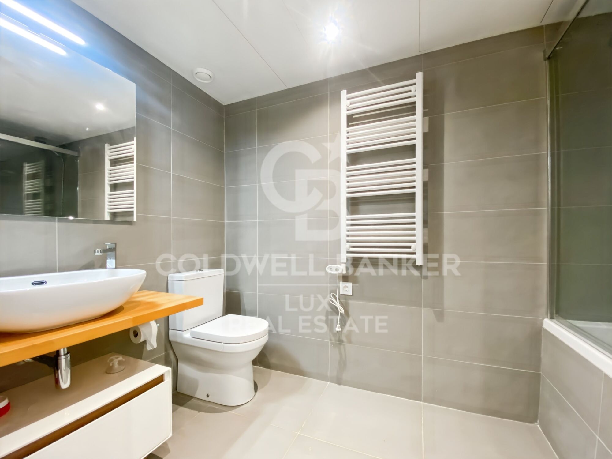 The apartment offers high-end features such as aerothermal heating, centralized air conditioning, an alarm system, a car lift, and direct access to a private parking space within the building.