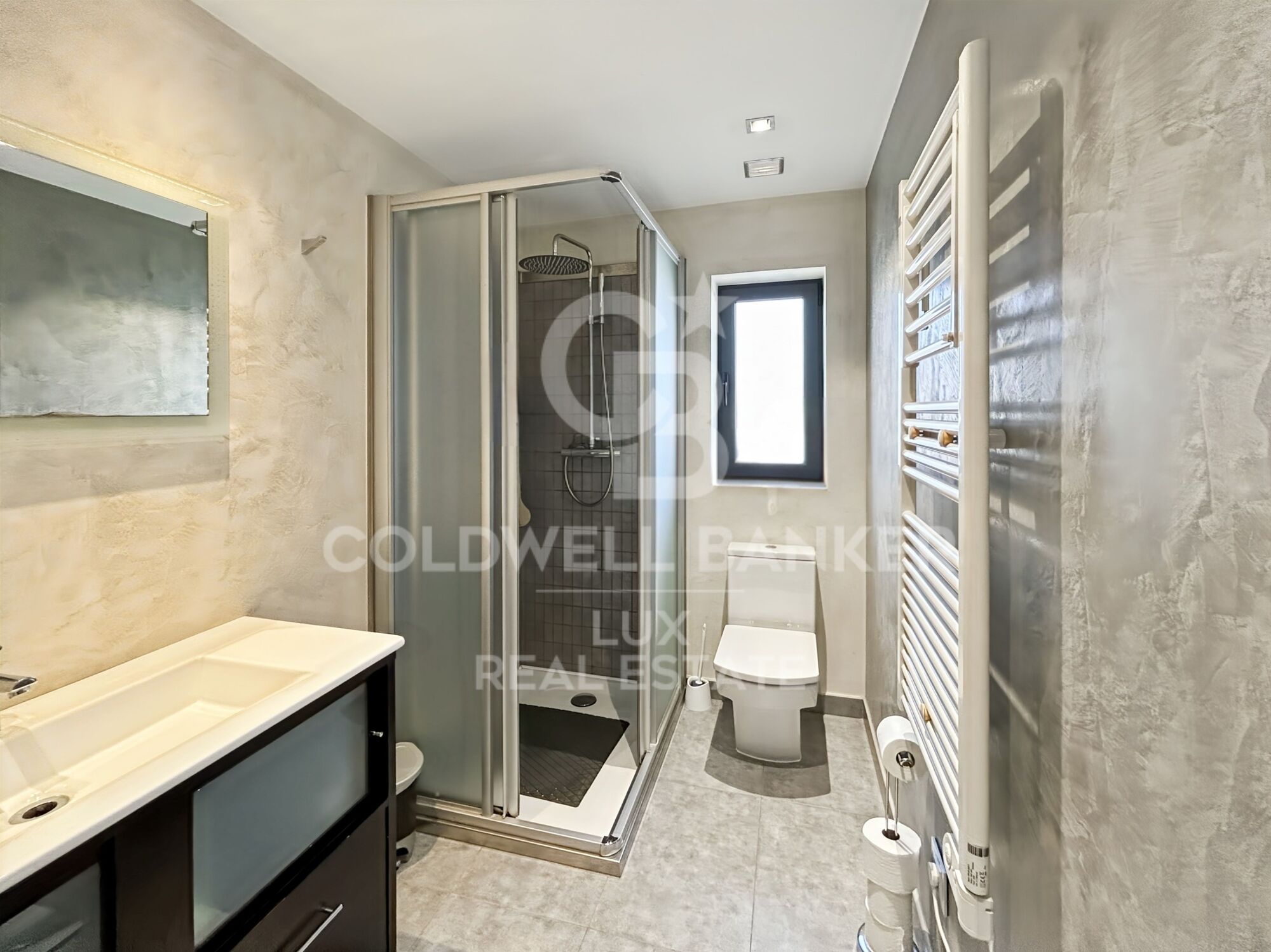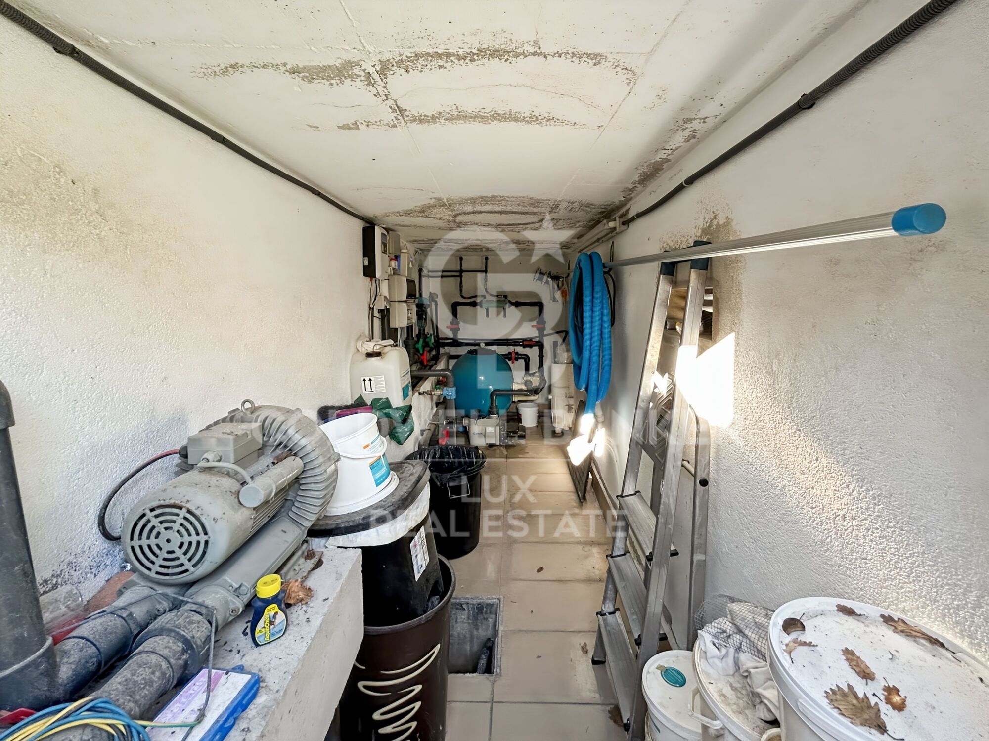 Built in 2008, the property is equipped with underfloor heating, air conditioning units, nine solar panels for hot water, a central vacuum system, an alarm system, and electric shutters.