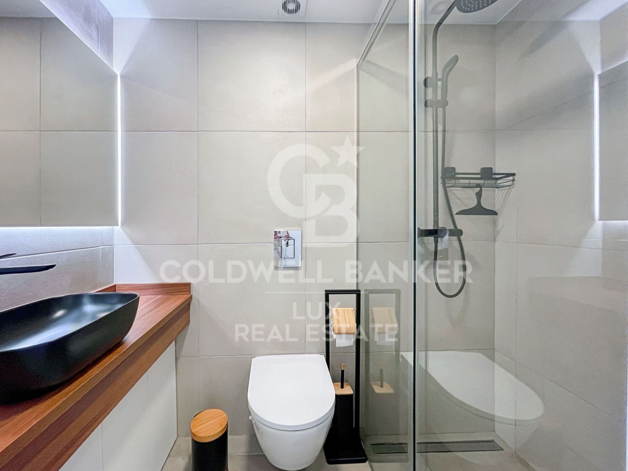 This apartment features an elegant entrance hall, a suite with a full bathroom and Italian shower, two double bedrooms with built-in wardrobes, and a second independent full bathroom, also ideal as a guest restroom.