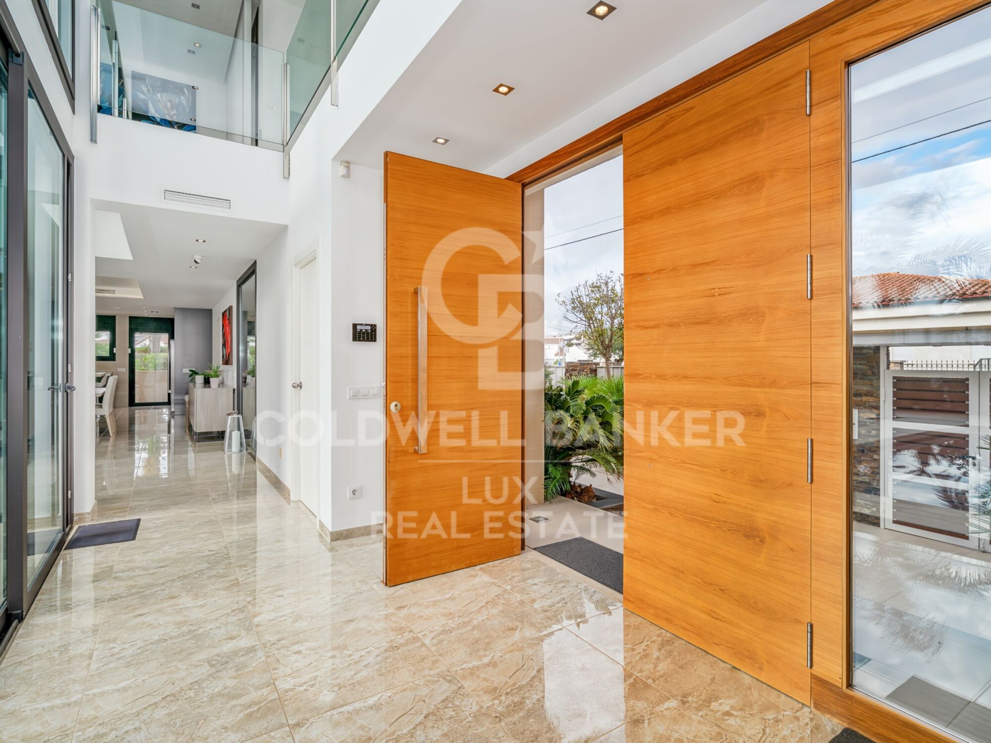 Built in 2016 with a south-facing aspect, the villa includes an elevator, underfloor heating, reversible air conditioning, solar blinds, a centralized vacuum system, waste management systems in the kitchen, a generator, and a complete security system with cameras, infrared barriers, and centralized control.