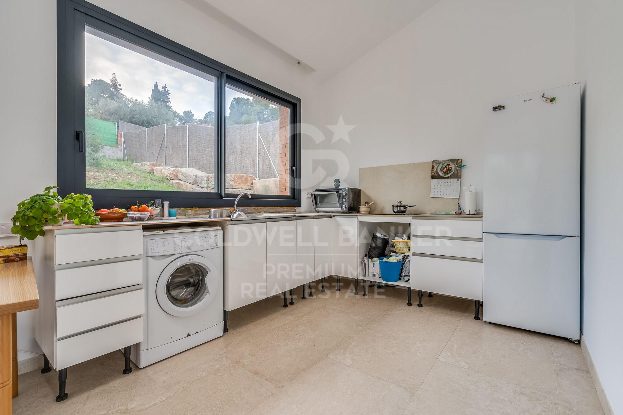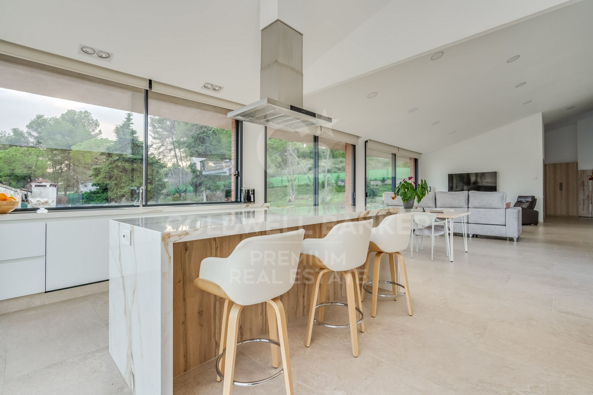 The house, distributed on one floor, combines functionality and style in each space. The heart of the home is a spacious and bright living-dining room, where minimalist design and panoramic views of the garden and surrounding nature become the protagonists. This space is not only perfect for relaxing, but also for entertaining friends and family in an atmosphere that invites enjoyment. The kitchen, completely open and integrated into the space, is a masterpiece in itself. With state-of-the-art appliances and finishes in high-quality materials, it becomes a place where cooking and sharing feel like a daily luxury.