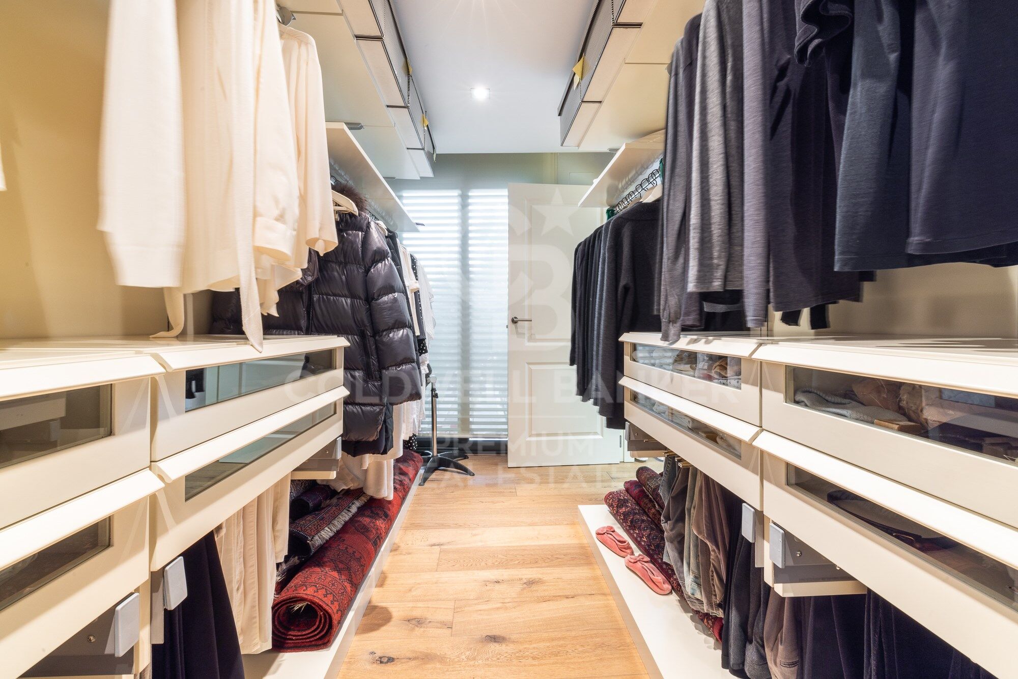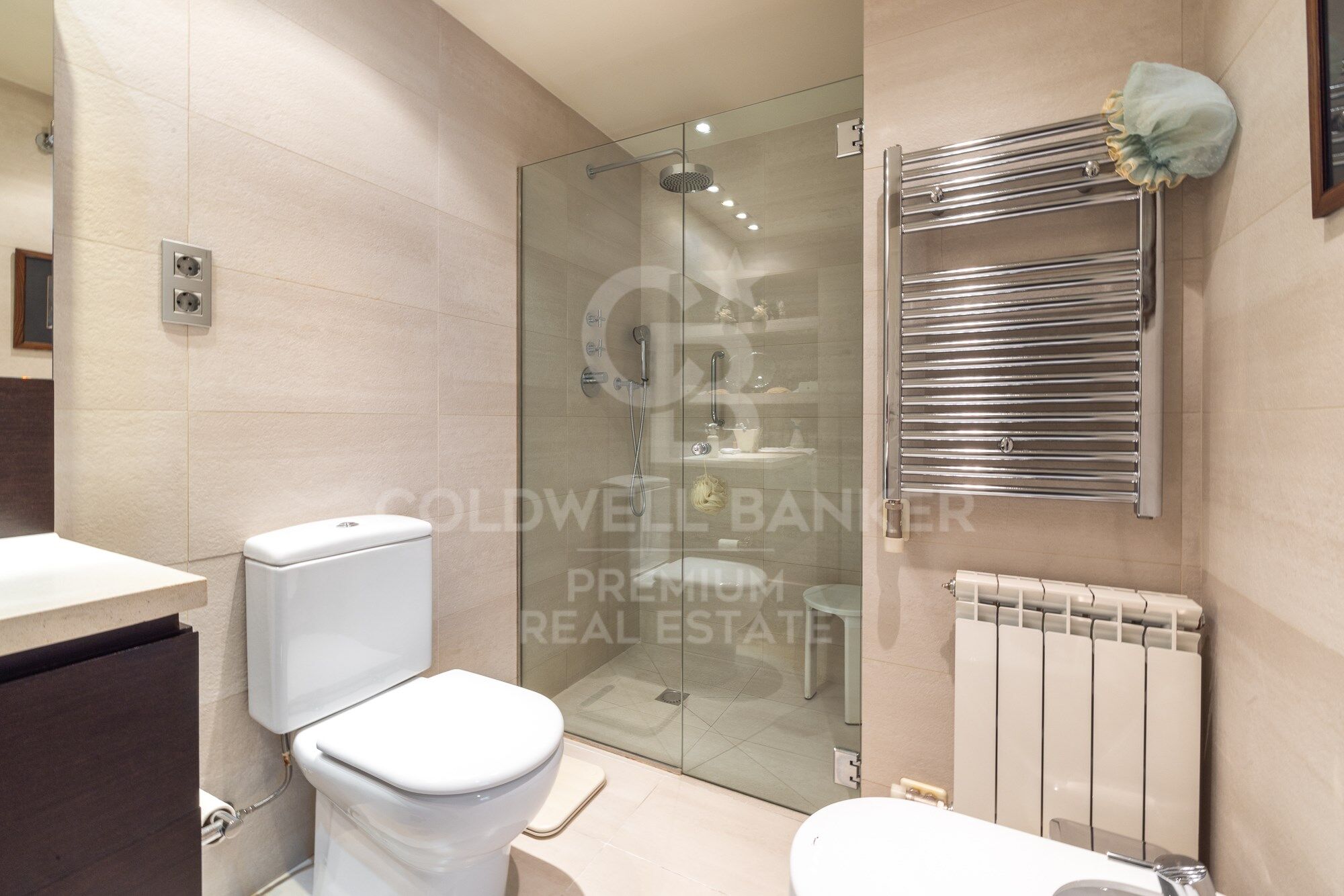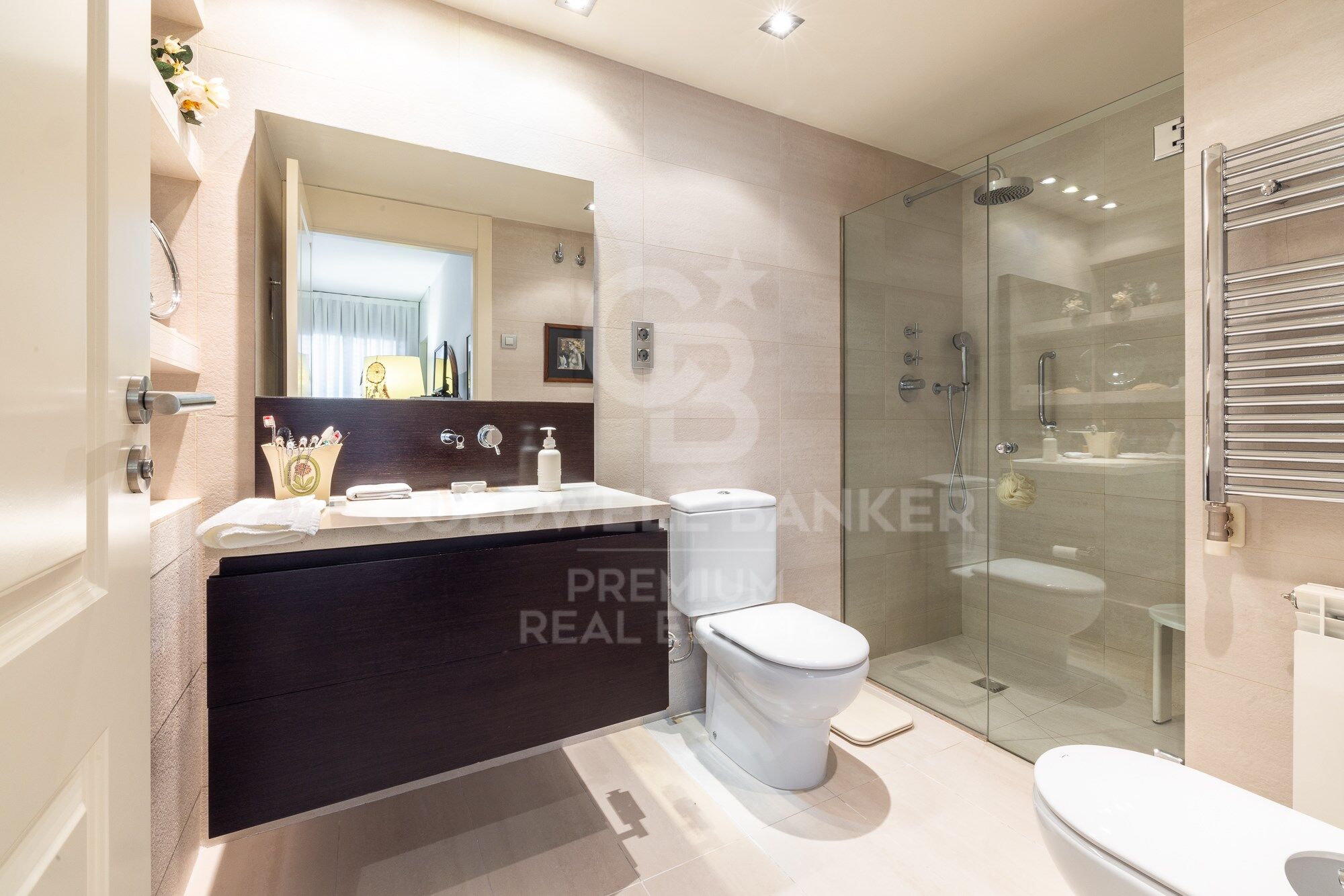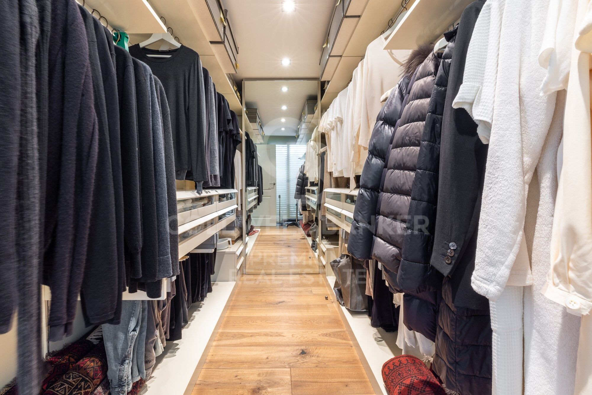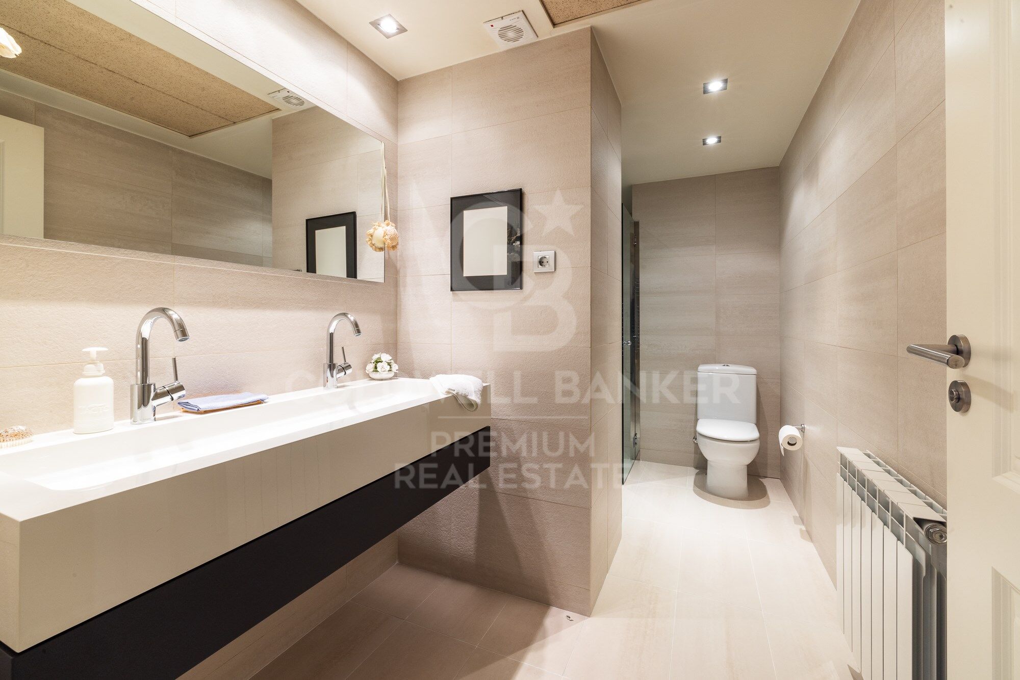 We continue moving forward and from the kitchen we reach the hallway, which has a courtesy toilet. From this point, on the right, we access the night area. A beautiful corridor with magnificent wardrobes and made-to-measure chests of drawers leads to each bedroom. There are three bedrooms, two doubles and one single. All of them have an en-suite bathroom. The master bedroom also has a large dressing room. The south orientation makes all the bedrooms warm and luminous.