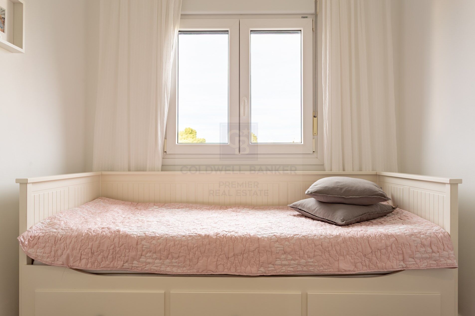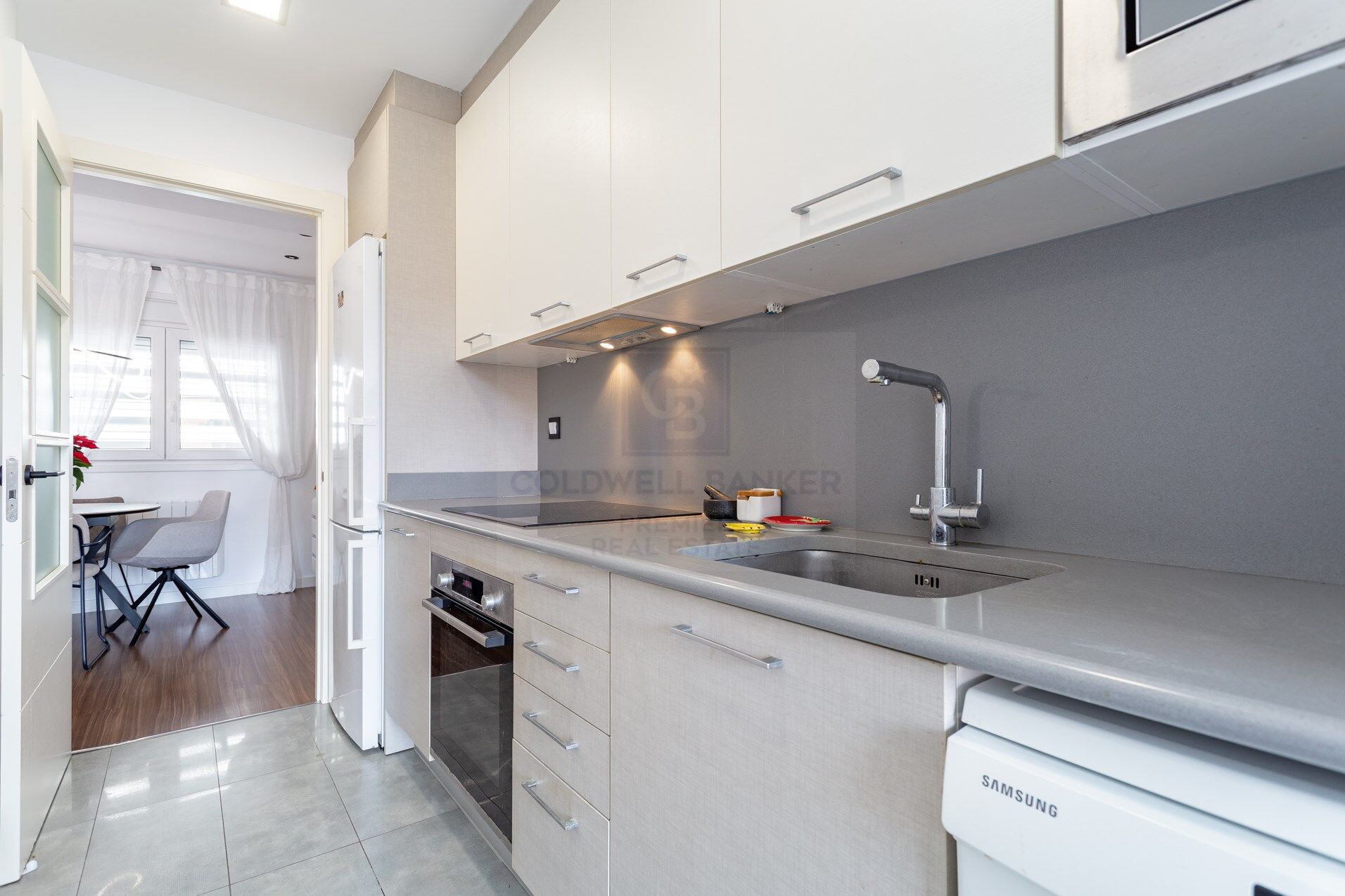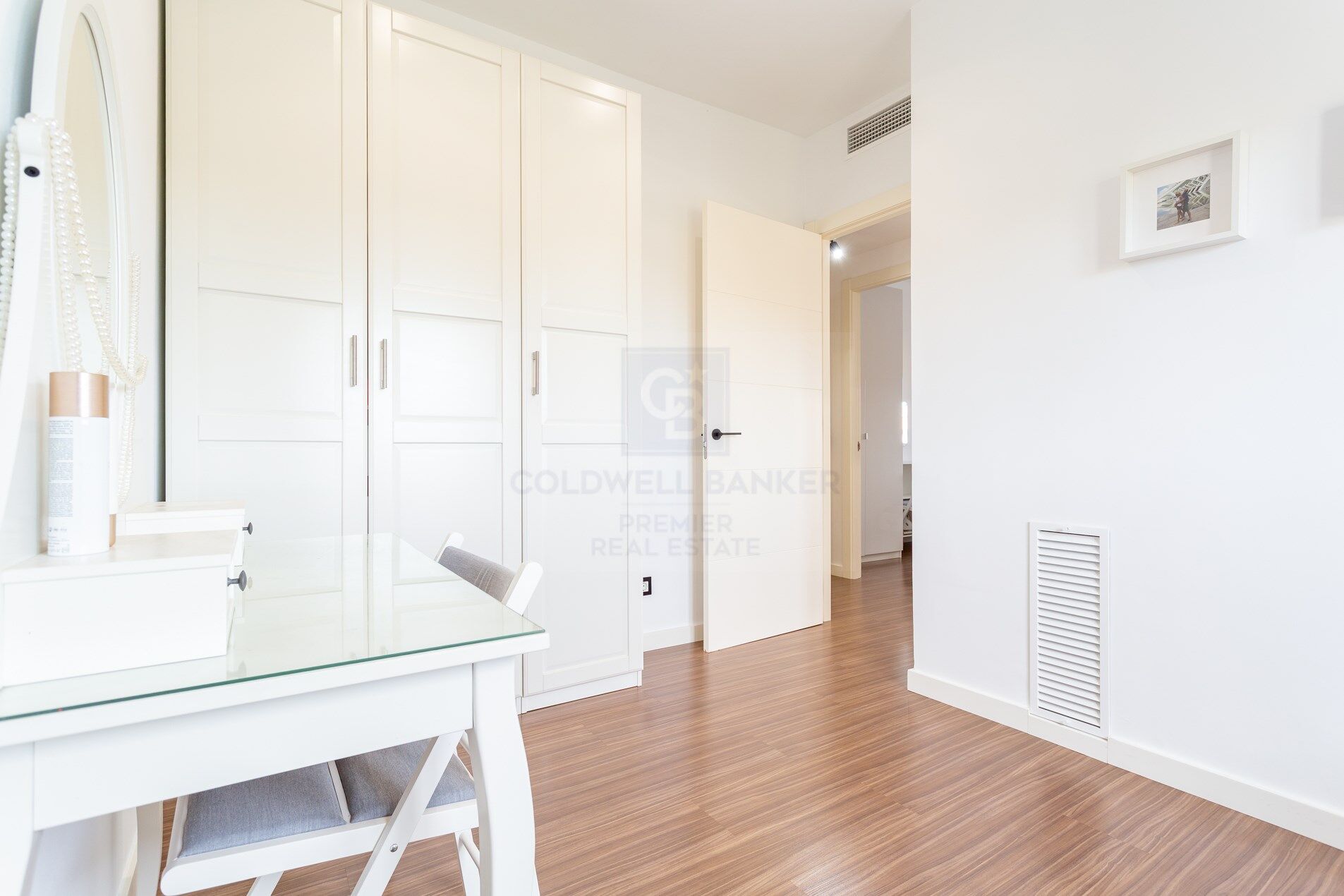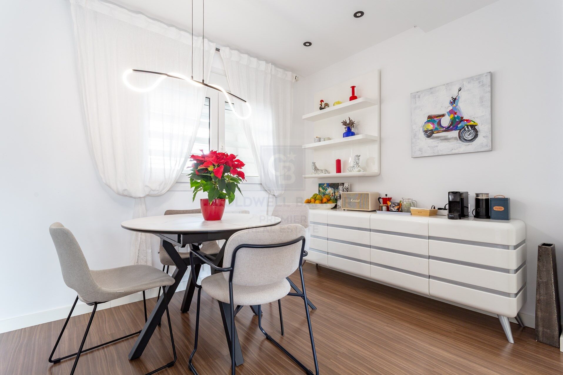The kitchen, independent, modern and functional, offers a layout designed for everyday use, with quality finishes and a timeless style. The night area is made up of three well-lit and ventilated rooms, thanks to the fantastic orientation of the house. The master bedroom has an en-suite bathroom, while the other two bedrooms share a second full bathroom. The materials used, the neutral tones and the general quality of the finishes reinforce the feeling of comfort and elegance in each room of the property.