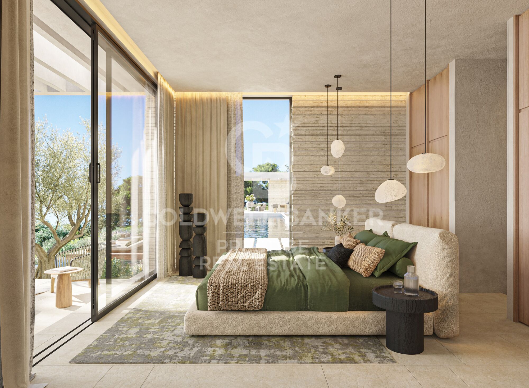 The property boasts 6 suites, including a Master Suite with its own walk-in closet, en-suite bathroom with shower and bathtub, and direct access to the outdoor terrace. All suites feature built-in wardrobes and private bathrooms with top-quality finishes.