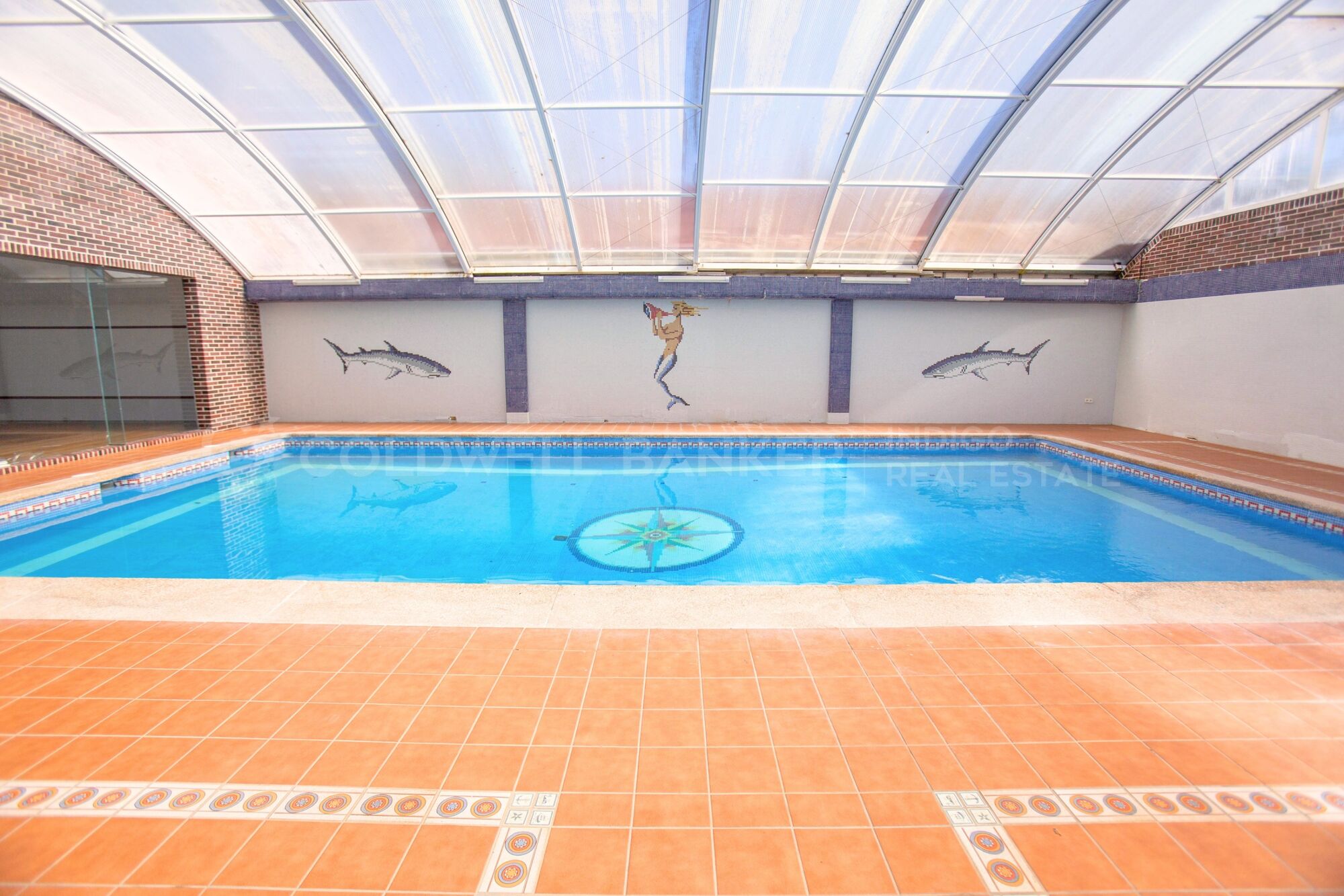 On the ground floor, you will find a large traditional kitchen, a spacious and bright living room that opens up as a perfect stage for family gatherings and intimate meetings. A garage and direct access to the heated pool with a retractable roof allow you to enjoy a revitalizing dip in any weather. This level also features a squash court and spacious changing rooms, where everything is designed on a grand scale to enjoy every moment shared with friends and loved ones.
