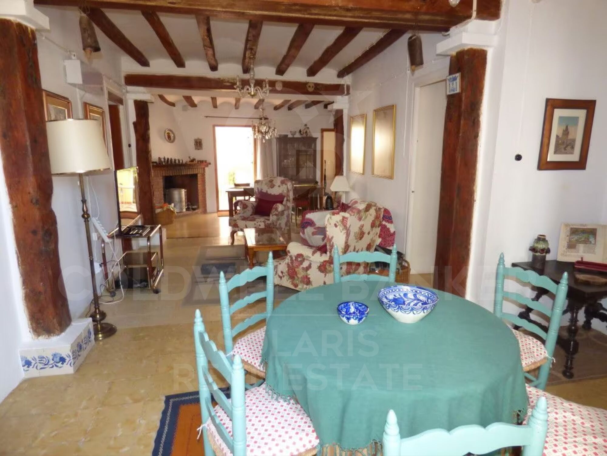 Living-dining room with fireplace