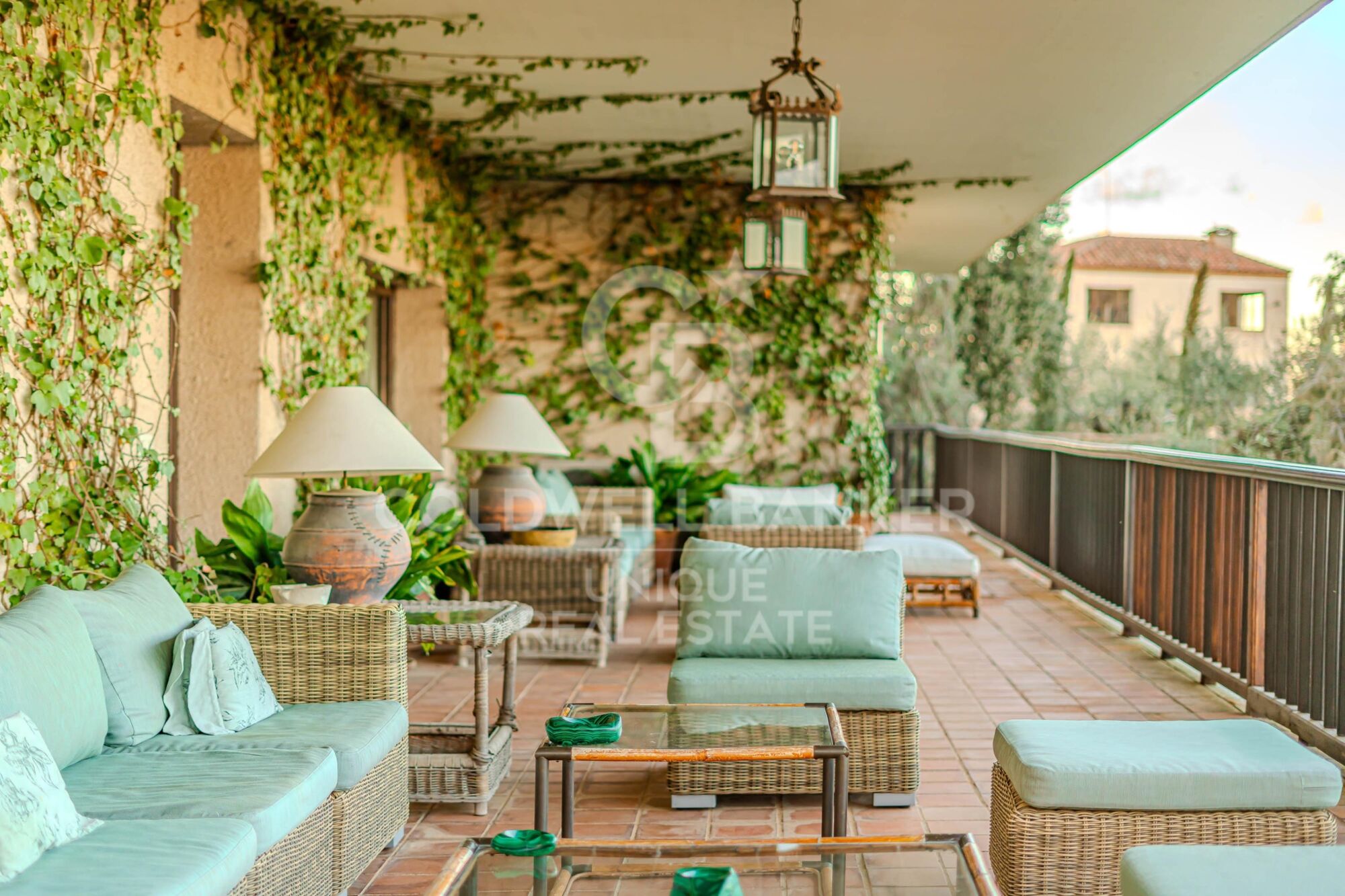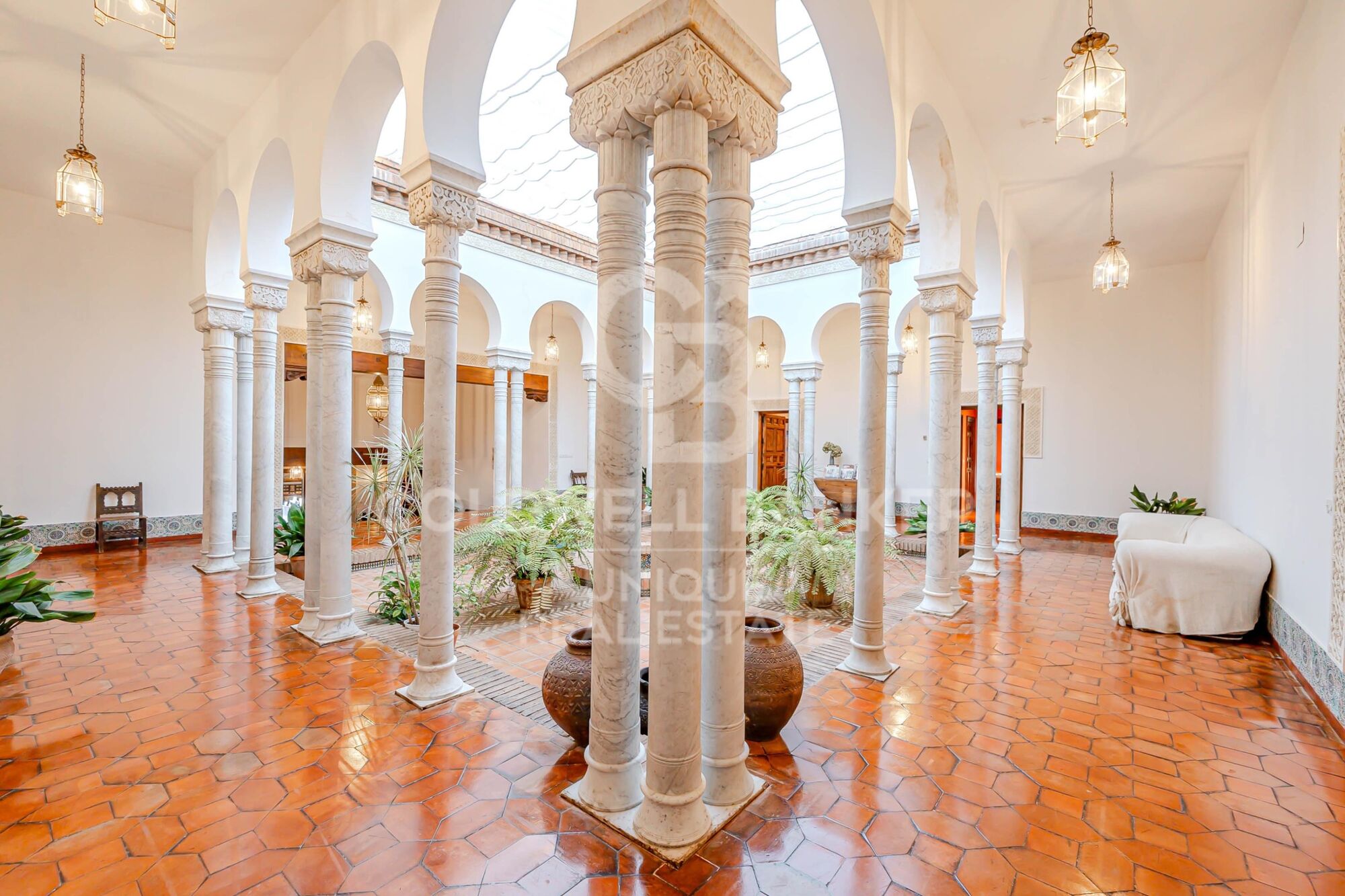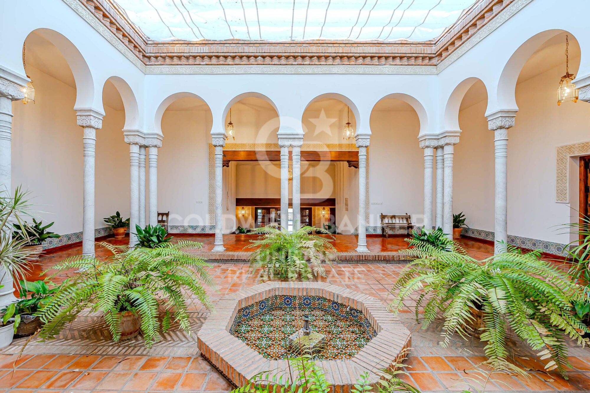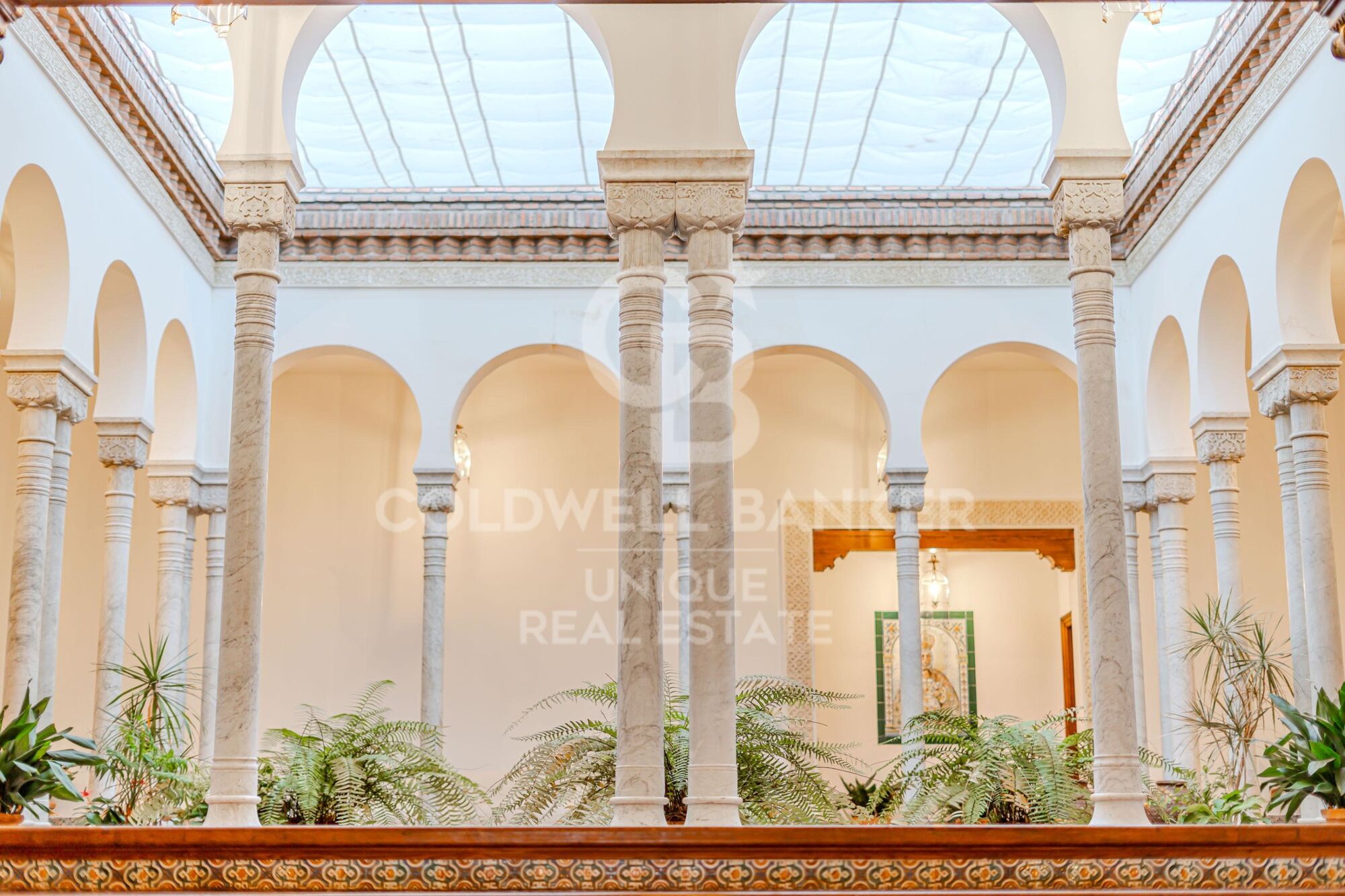 Immerse yourself in the oasis of tranquillity offered by its magnificent Andalusian courtyard, adorned with original columns and tiling from Madrid's prestigious Larios Palace, a historic treasure that adds a touch of authenticity and unparalleled elegance. Eighteenth century solid wood doors, together with top quality materials and exceptional finishes, highlight the attention to detail and excellence in every aspect of this unique residence.