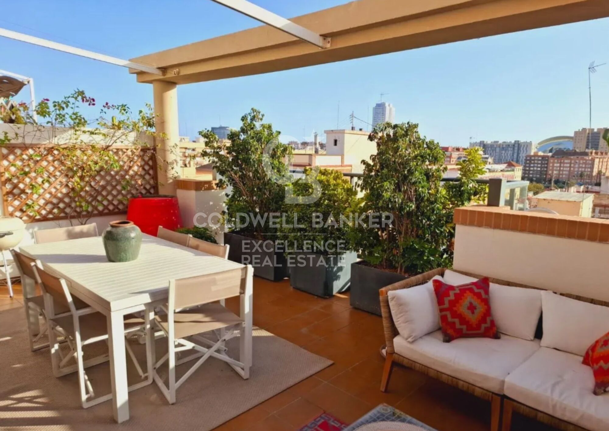 Coldwell Banker Excellence presents this beautiful furnished penthouse in the Albors neighborhood for rent. Located in a modern building from 2008, the penthouse is ideal for comfortable, high-quality living. Situated in a central area and surrounded by all necessary amenities, the penthouse is an 8-minute walk from the Turia River, right next to the Santa Ana School, and a 5-minute walk from the Albors market and metro station. From its incredible 20 m2 terrace, you can enjoy breathtaking panoramic views over Valencia.