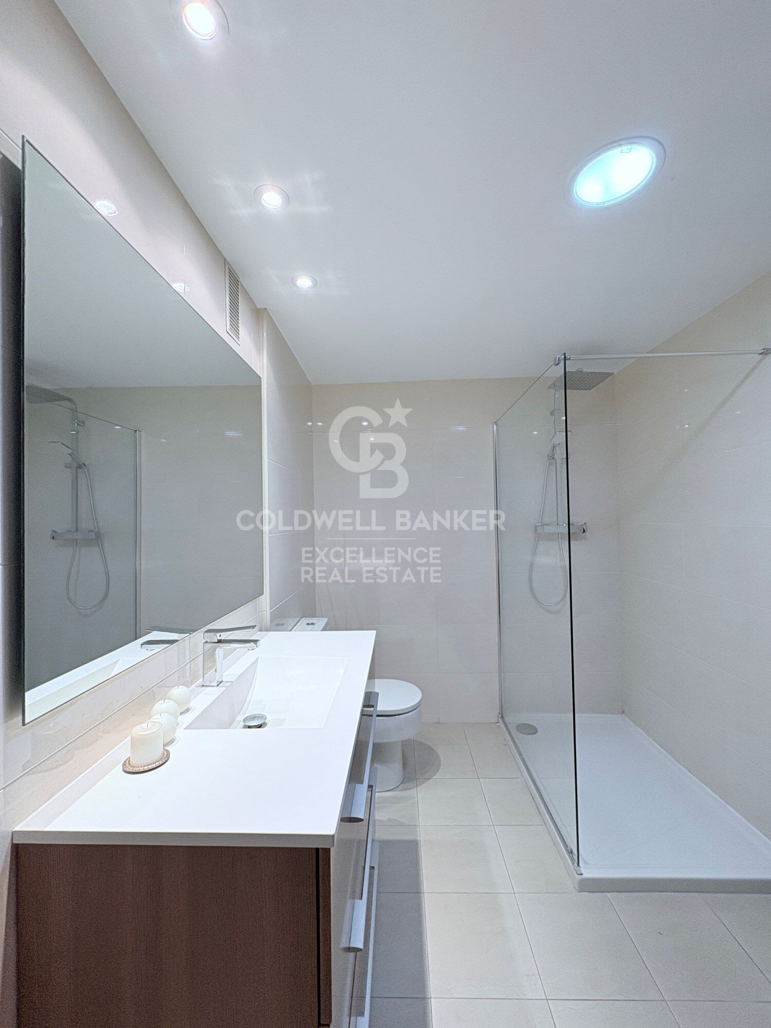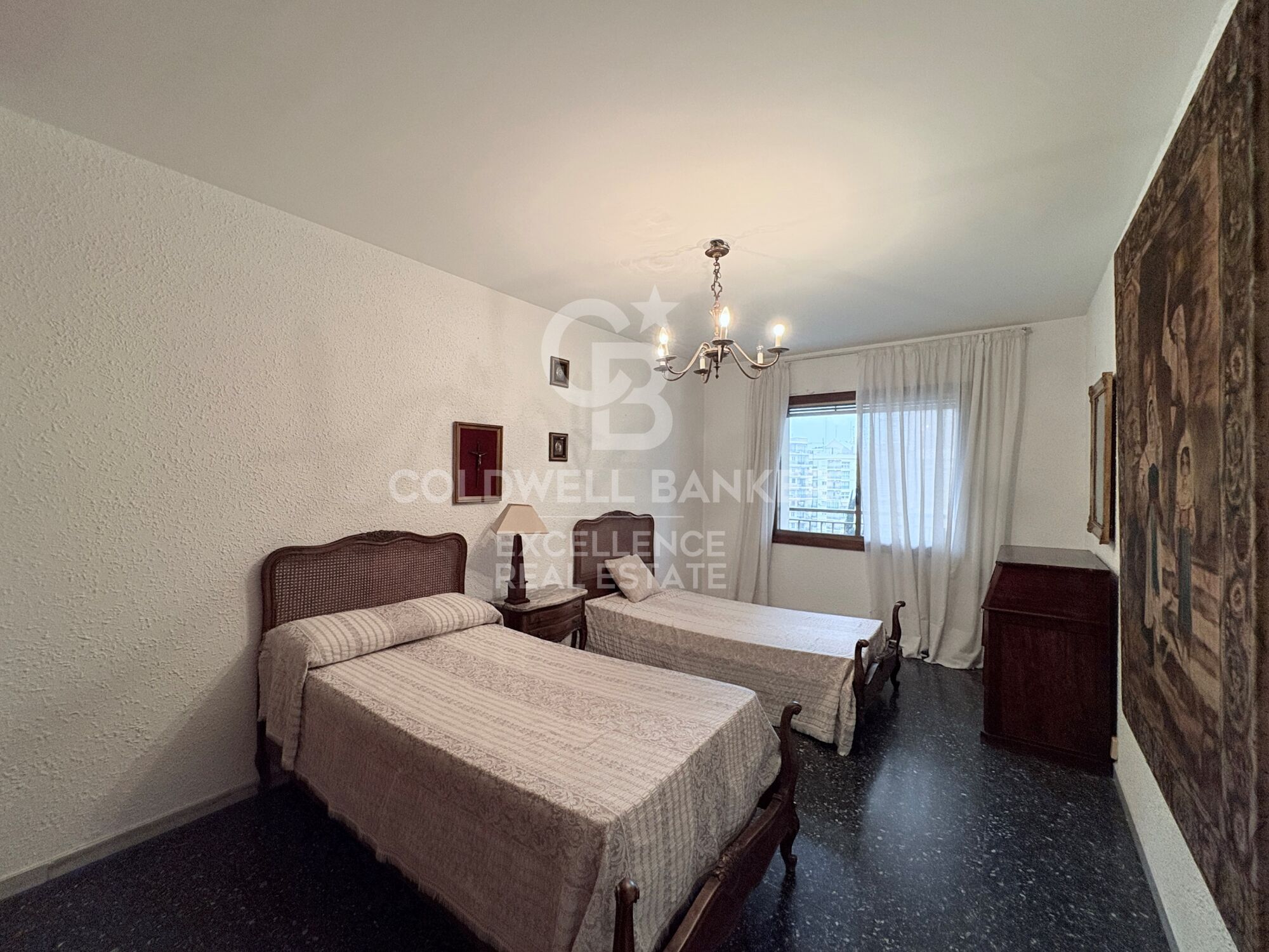 The house has double access, main door and service door, providing functionality and comfort. The spacious and bright living room opens onto a pleasant east-facing terrace, where you can enjoy the morning sun. The flat has three double bedrooms plus one single: the master bedroom with en-suite bathroom and another bedroom, both exterior; a third interior bedroom in addition to the service bedroom with its en-suite bathroom. It also has two bathrooms completely renovated three years ago, as well as the kitchen, which incorporates a practical gallery. The house has two radiators, a split air conditioning and electric blinds in the living room. The building has two lifts for the homes and an independent lift that connects to the garage, which has night surveillance.