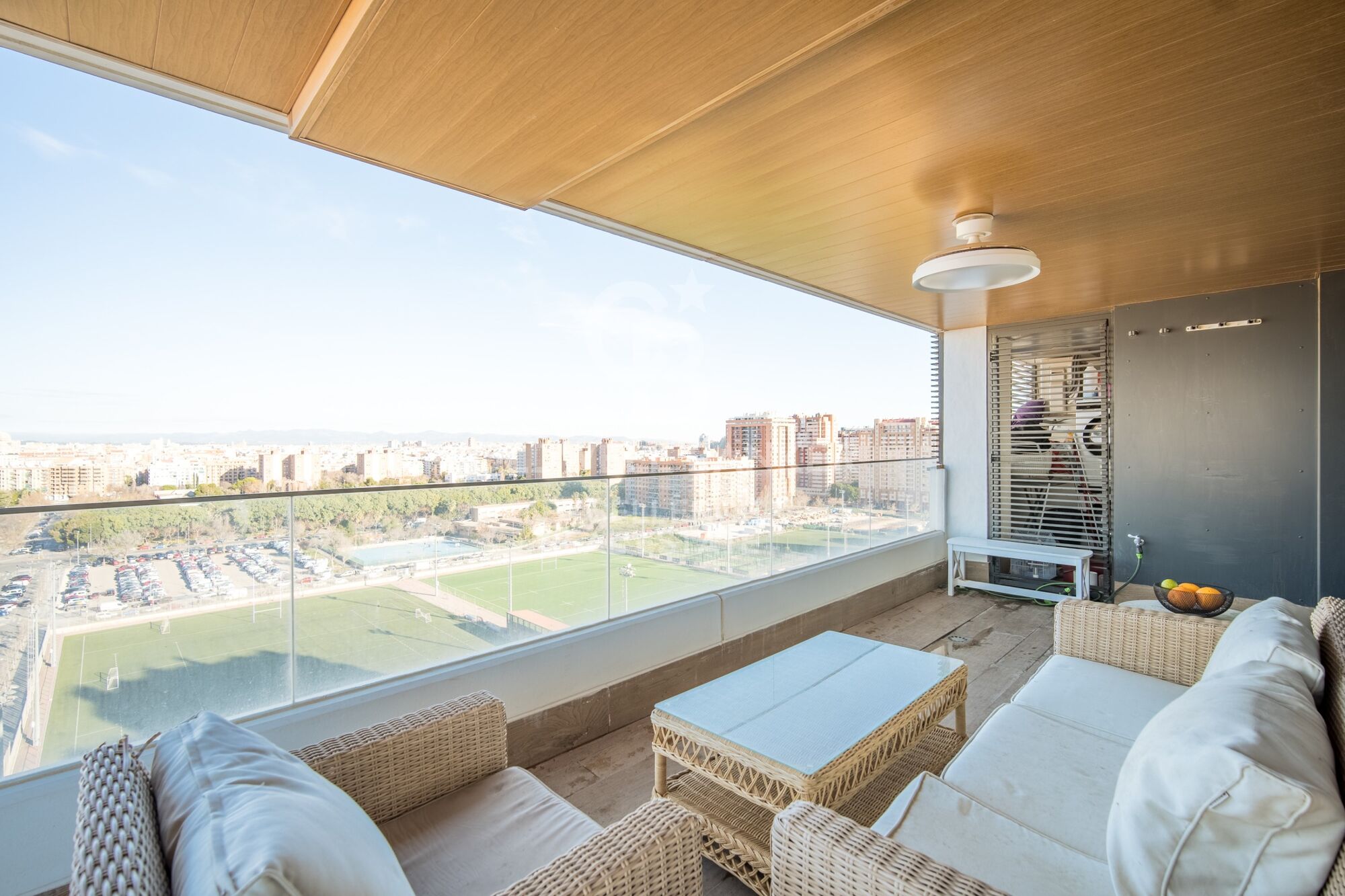 The surroundings of the flat are unbeatable as it is an expanding area just 7 minutes walk from the City of Arts and Sciences, 5 minutes from the El Saler Shopping Center and 1 minute from the new Roig Arena sports pavilion. It enjoys excellent public transport connections close to green areas, international schools, gourmet restaurants and public transport.