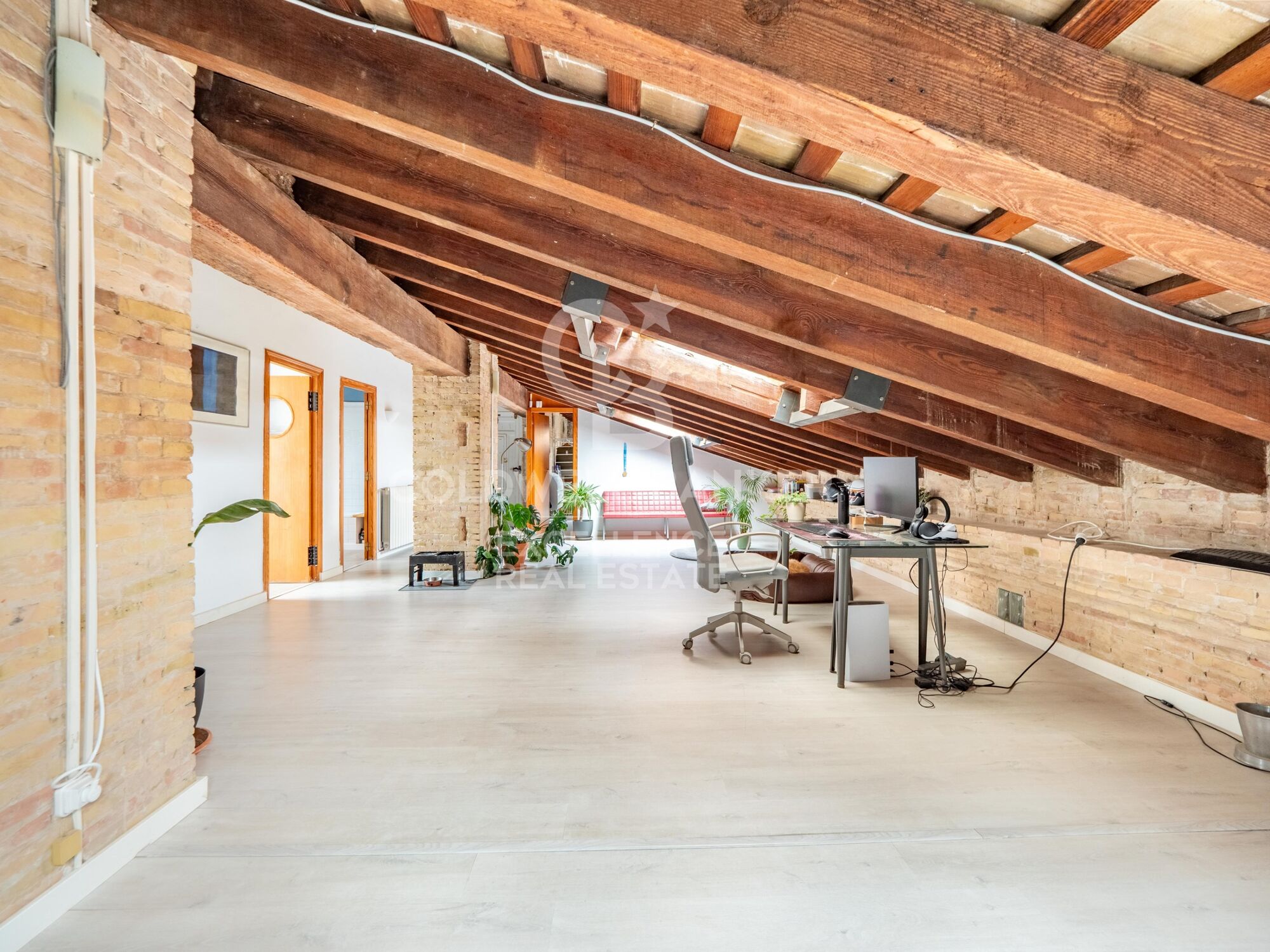 Coldwell Banker exclusively presents this 197 m² penthouse in the heart of Valencia, just a few steps from the emblematic Plaza de lah Reina. Set in a carefully refurbished 1900's manor estate, this unique property combines historic charm with contemporary comfort. Its extraordinary luminosity, sloping ceilings and exposed wooden beams create a warm, elegant and characterful atmosphere.
