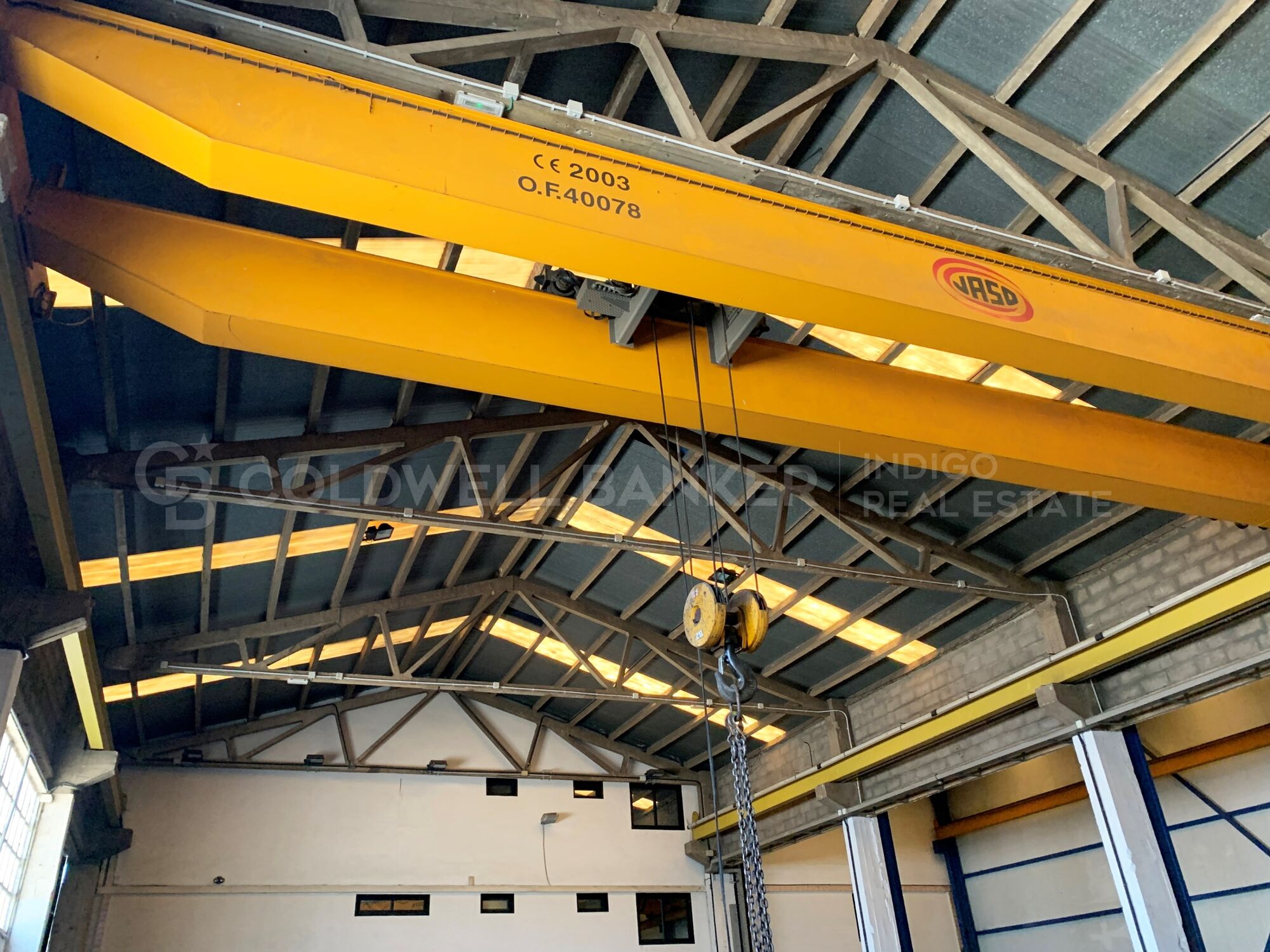 1.150 m2 de Nave industrial, equipado con 3 puentes grúa de 16, 8 y 1,5 toneladas respectivamente.