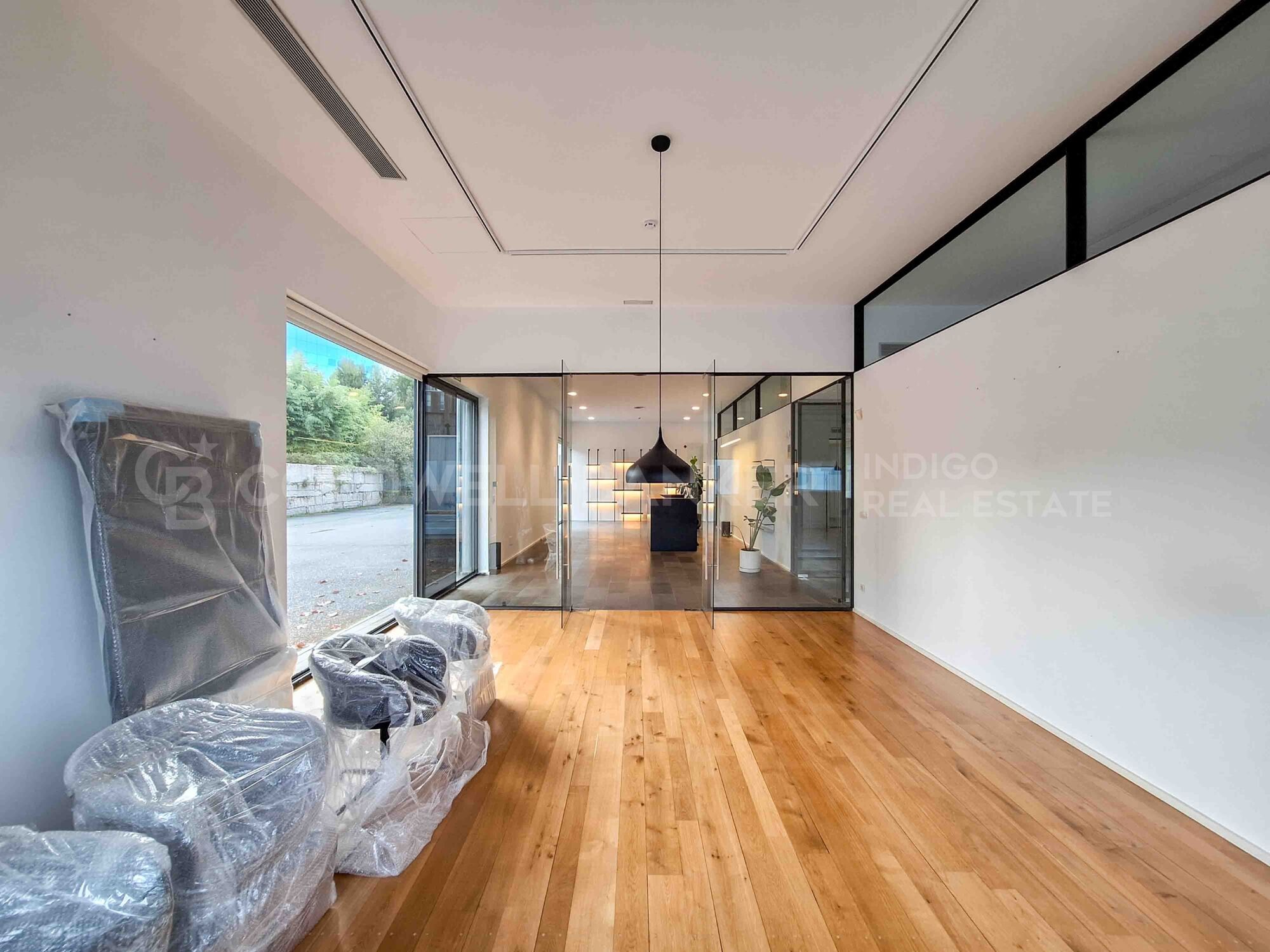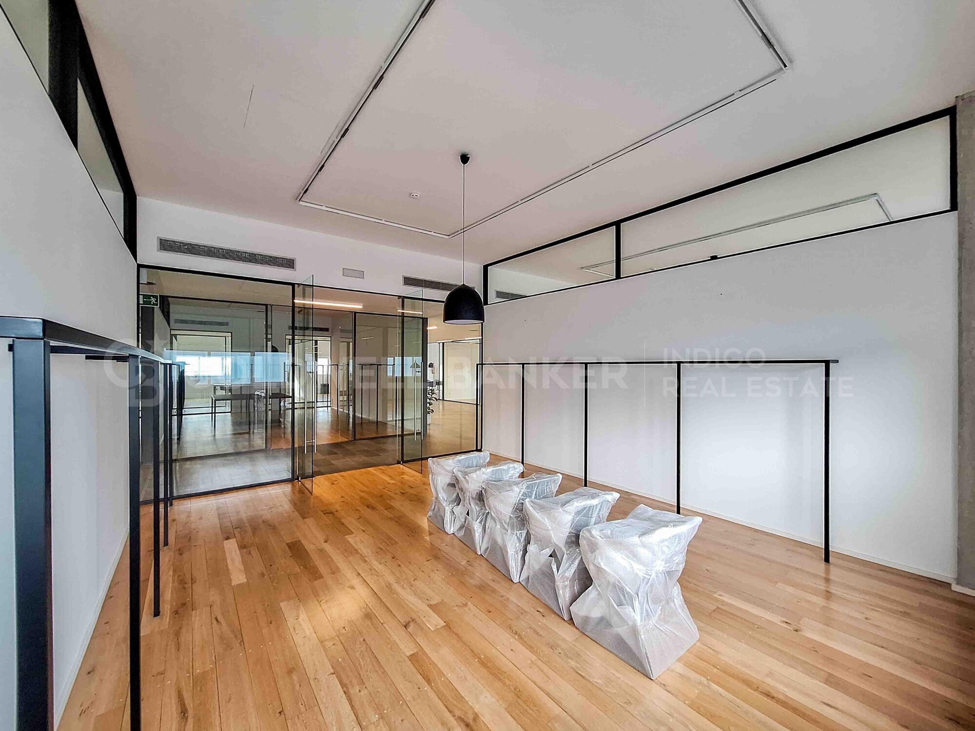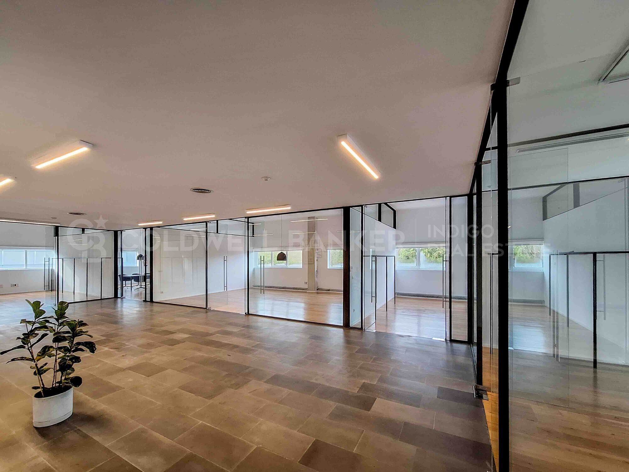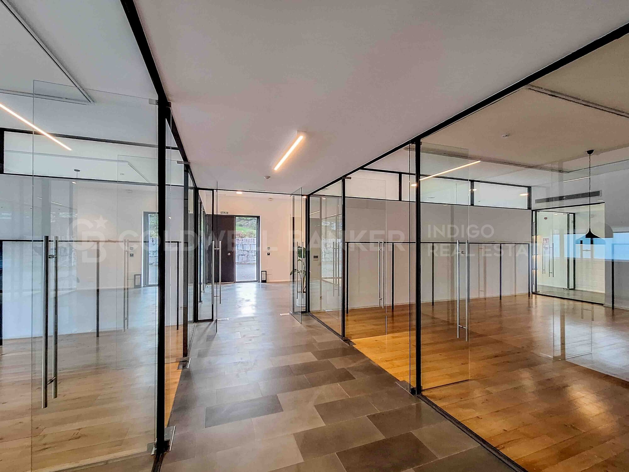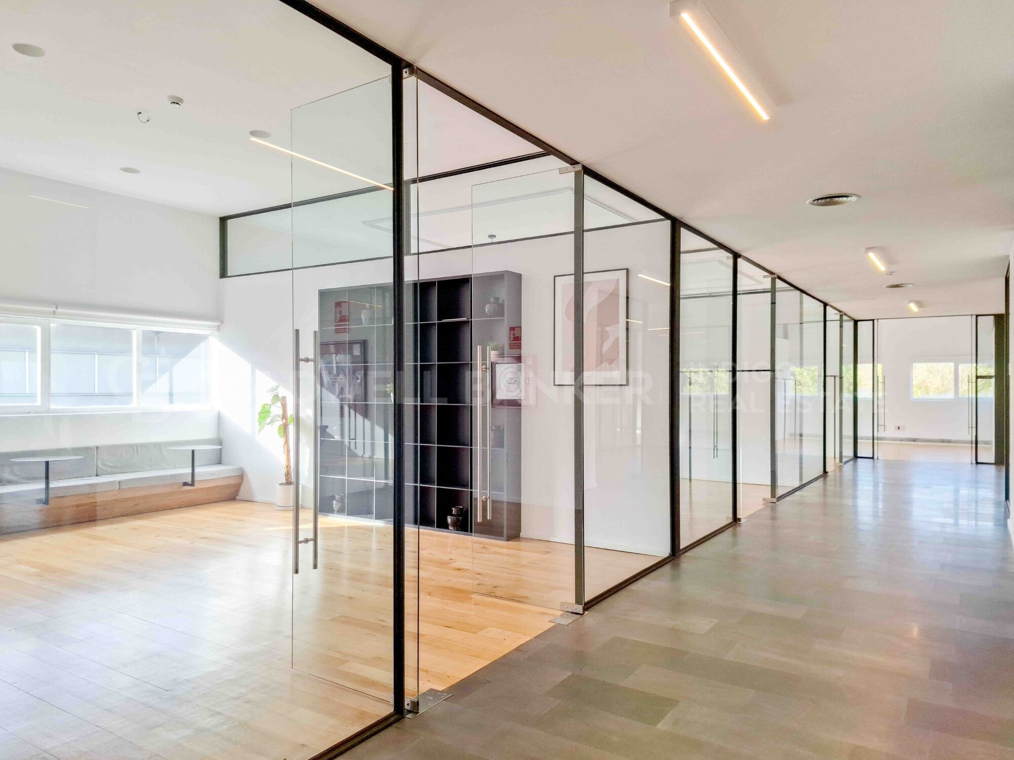 La propiedad destaca por una gran recepción de diseño, que da paso a un conjunto de 19 oficinas privadas, todas ellas exteriores, muy luminosas y acristaladas, con vistas al monte. El cerramiento con ventanas Climalite de doble cristal garantiza confort térmico y acústico en cualquier época del año.