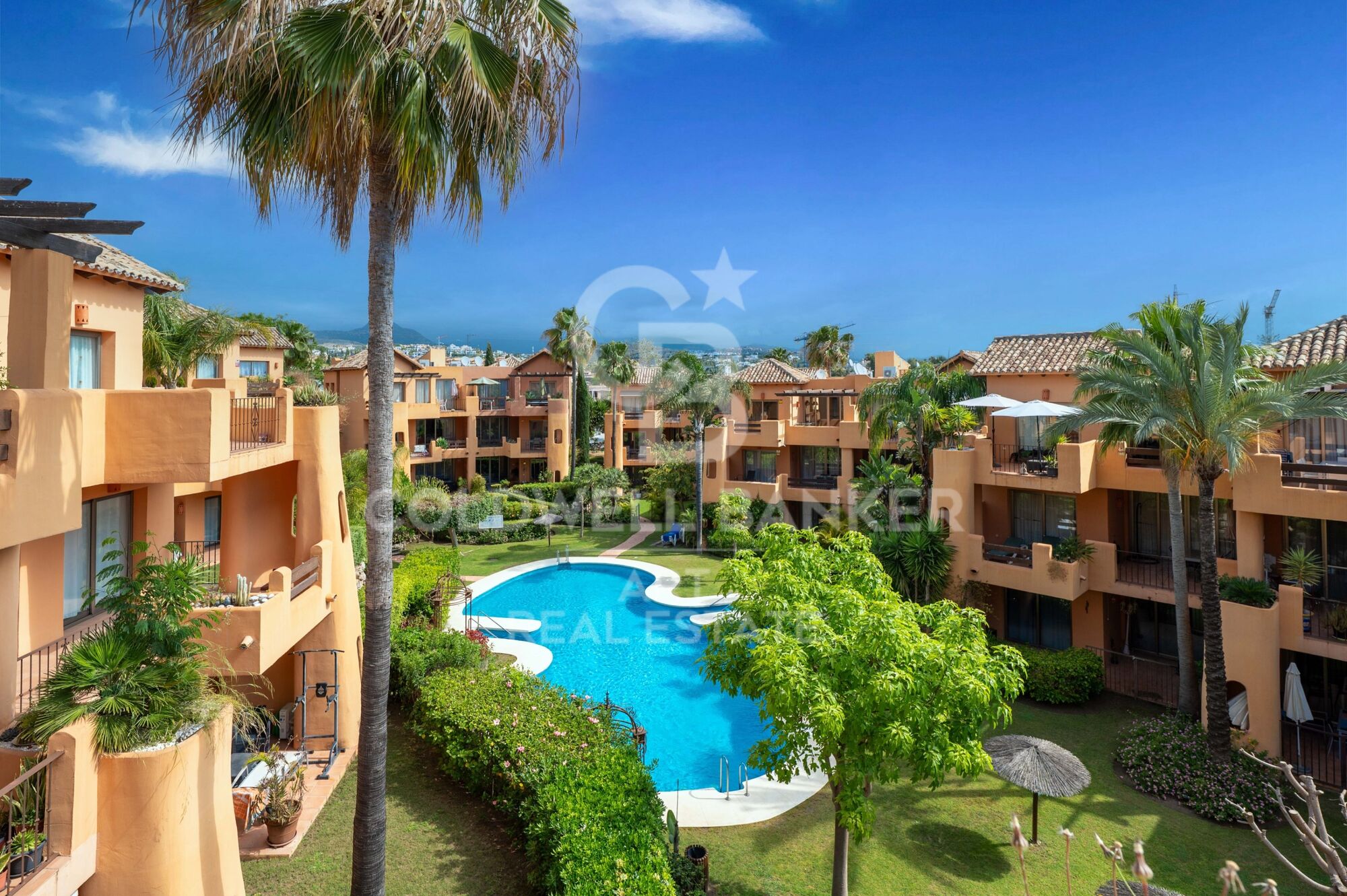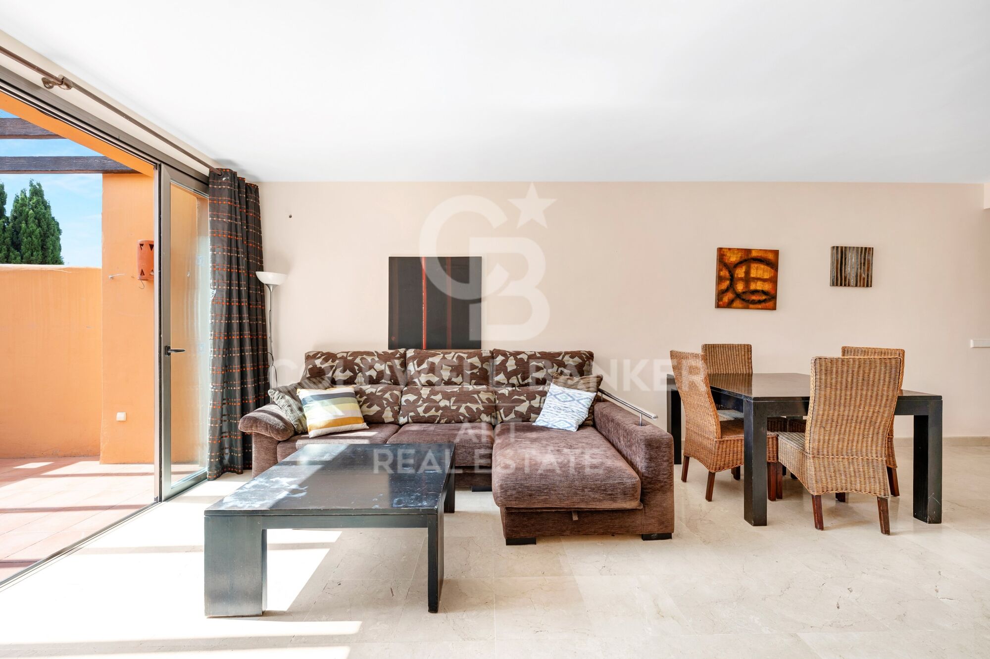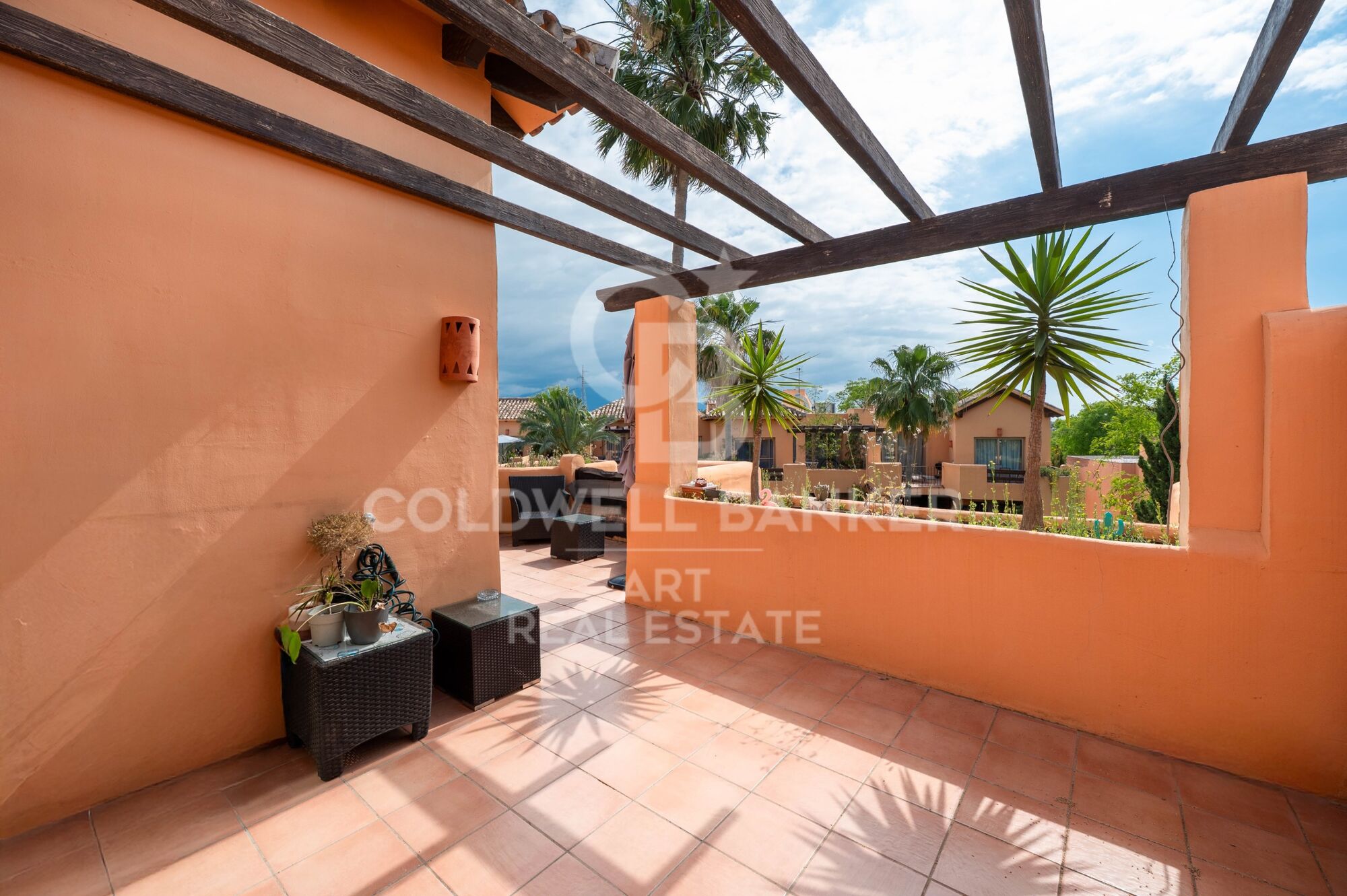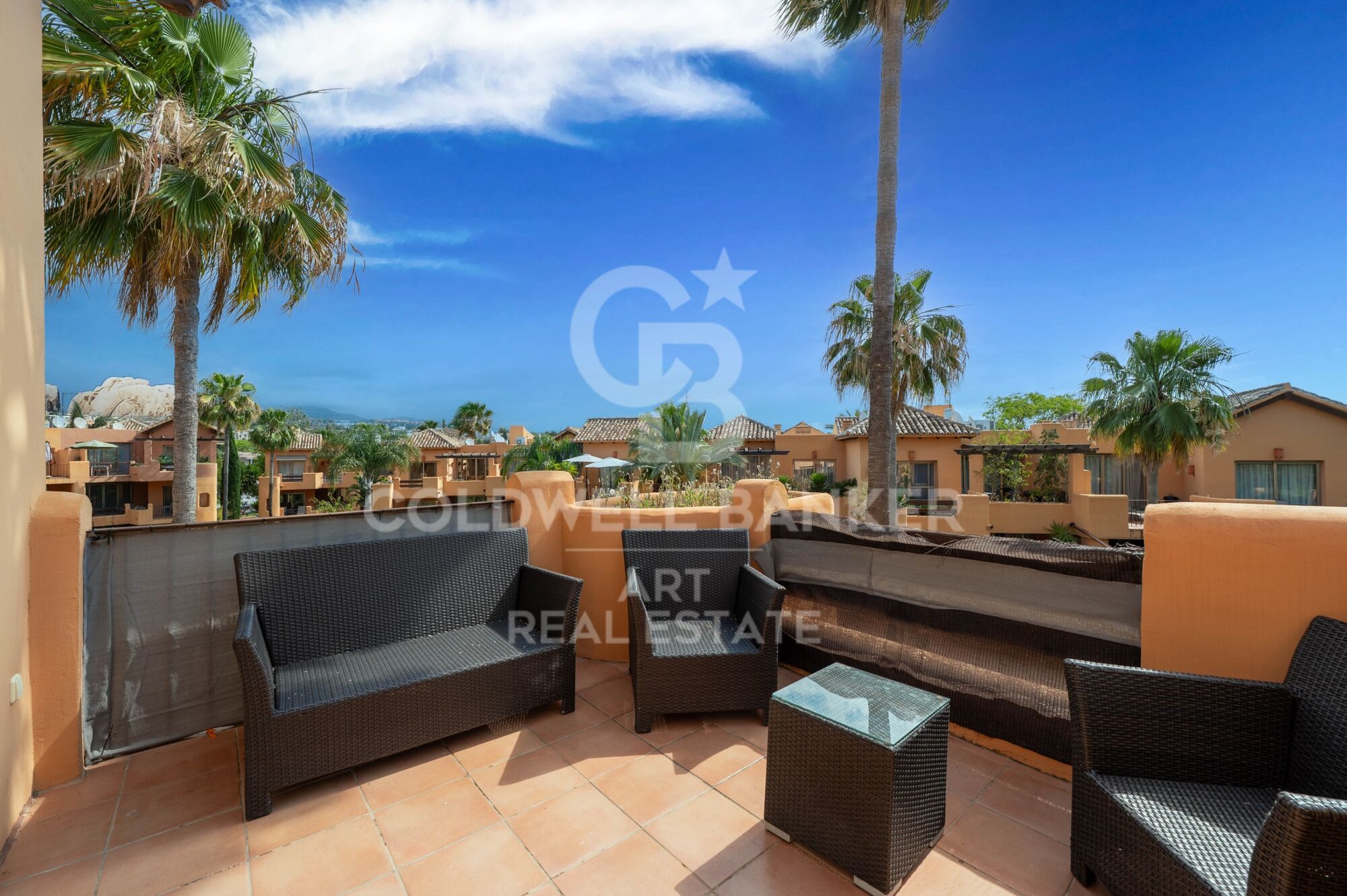 Este espacioso ático de 2 dormitorios se encuentra en la codiciada zona de Bel Air, Estepona Este, dentro de una comunidad cerrada y segura.