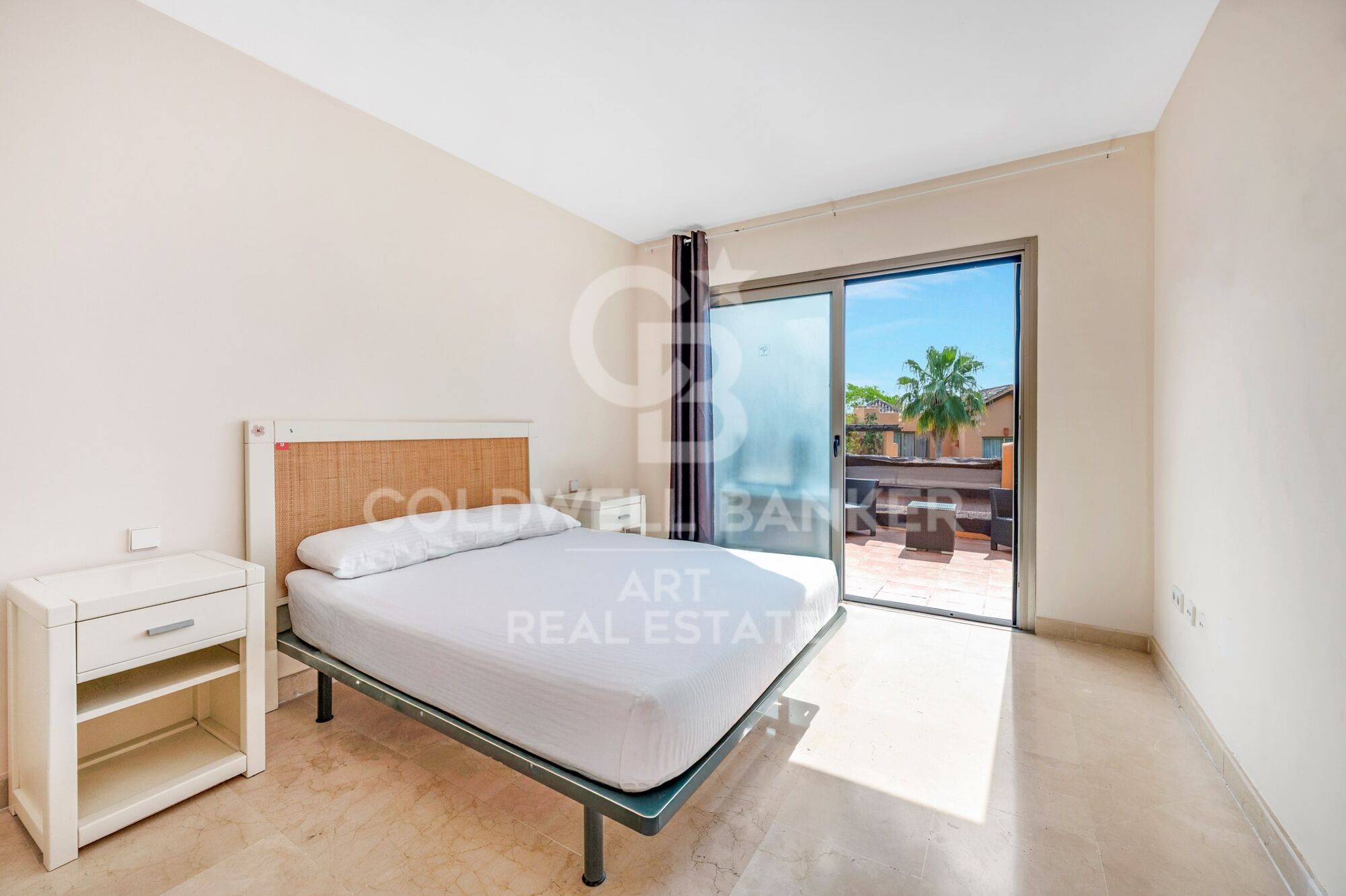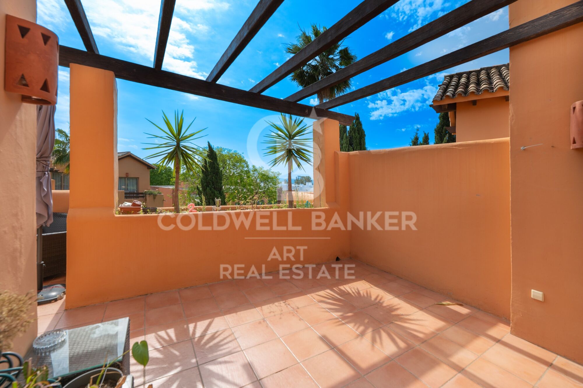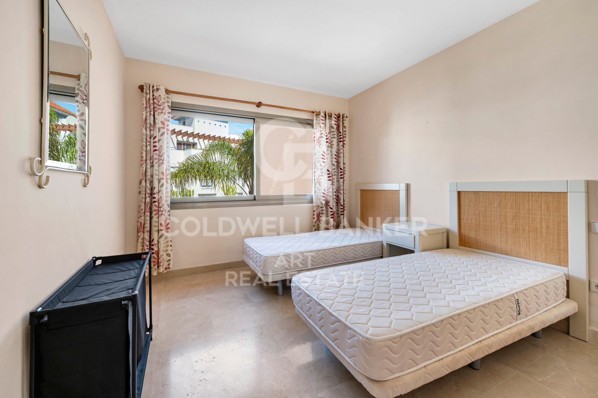 La joya del apartamento es su gran terraza privada, que ofrece vistas parciales al mar y vistas tranquilas a la piscina comunitaria y a los jardines bien cuidadosideal para relajarse o recibir invitados.