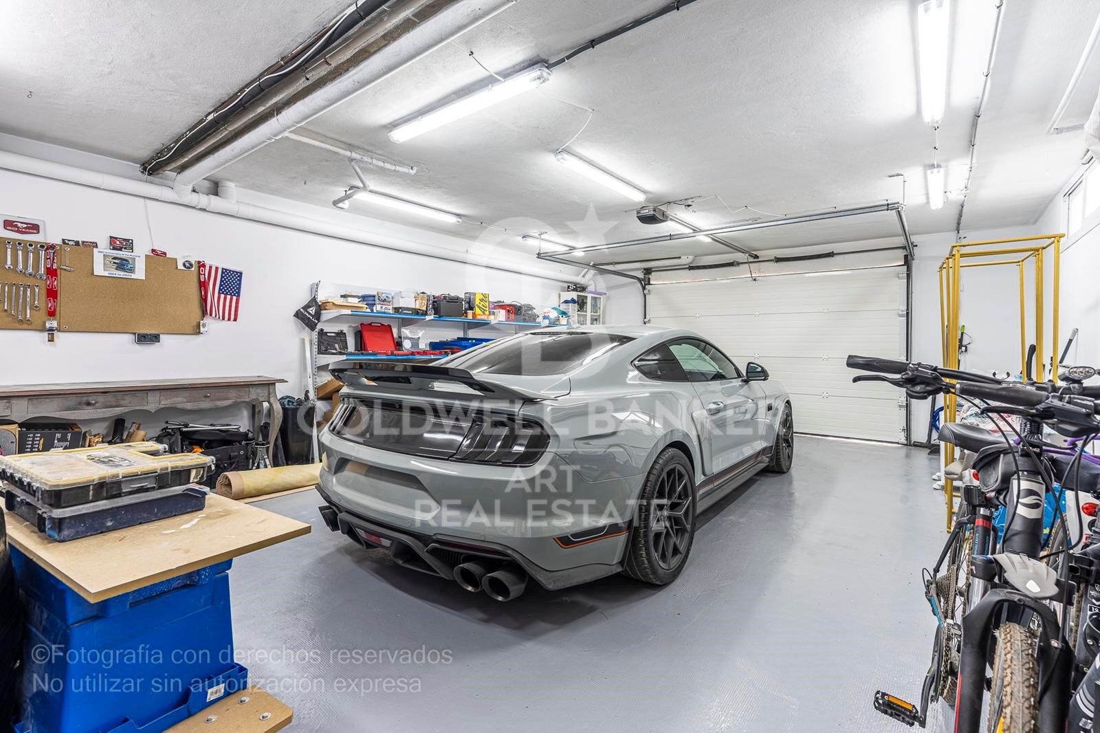 Con seis dormitorios y seis baños, la villa ofrece un amplio espacio y comodidad para la vida familiar. Las características adicionales incluyen una gran área de estacionamiento al aire libre, dos garajes cerrados, un gimnasio y múltiples trasteros.
