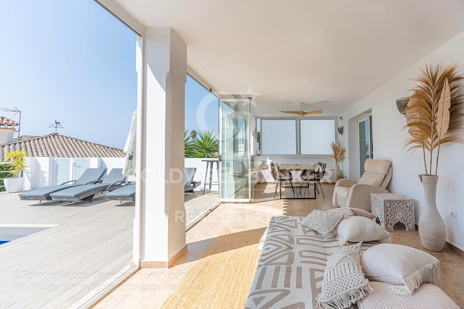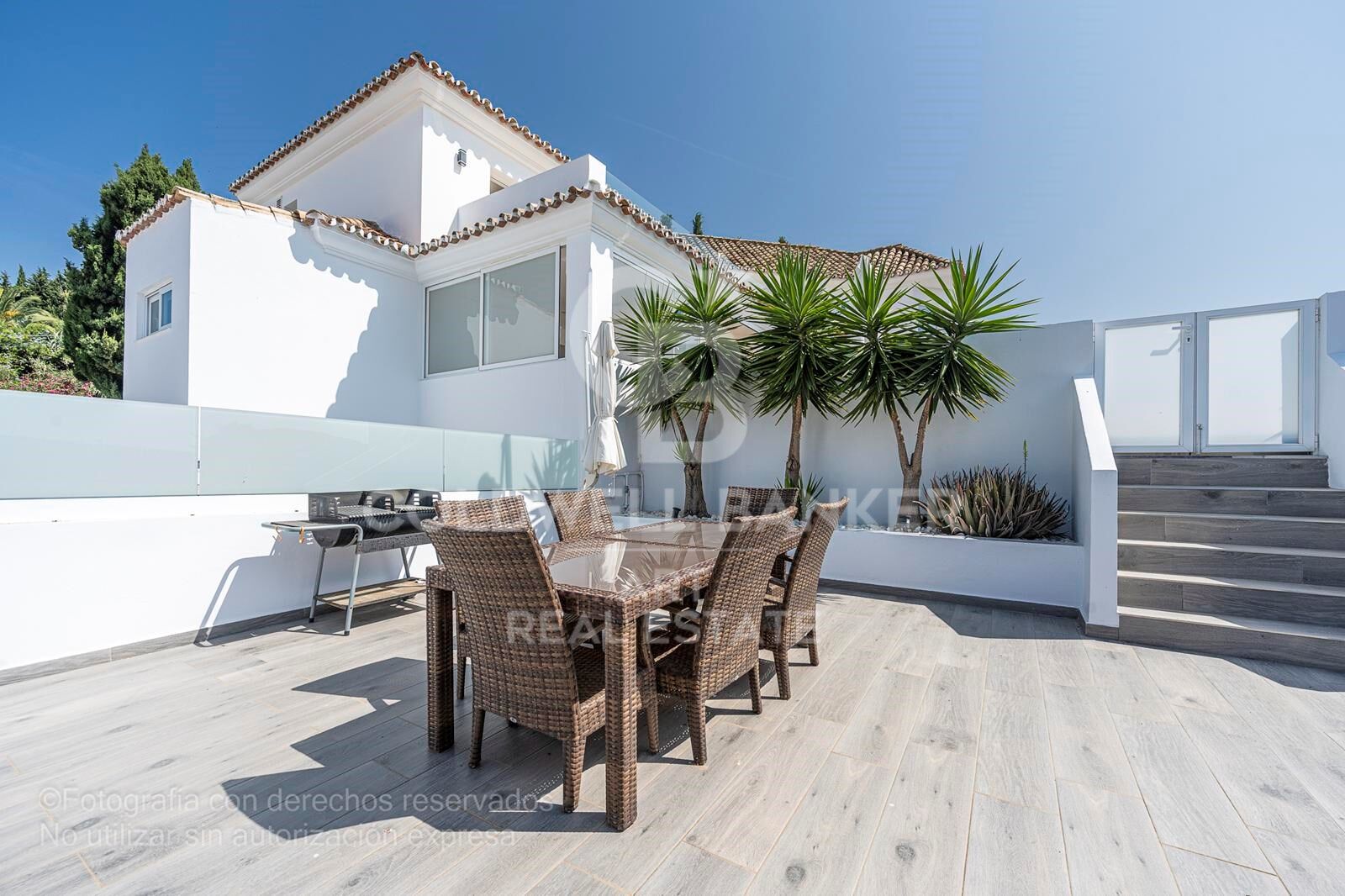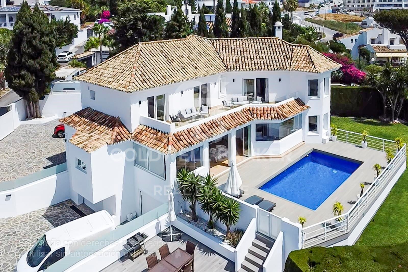 Elegante villa andaluza-moderna con vistas al mar en la tranquila zona oeste de Estepona, Costa del Sol