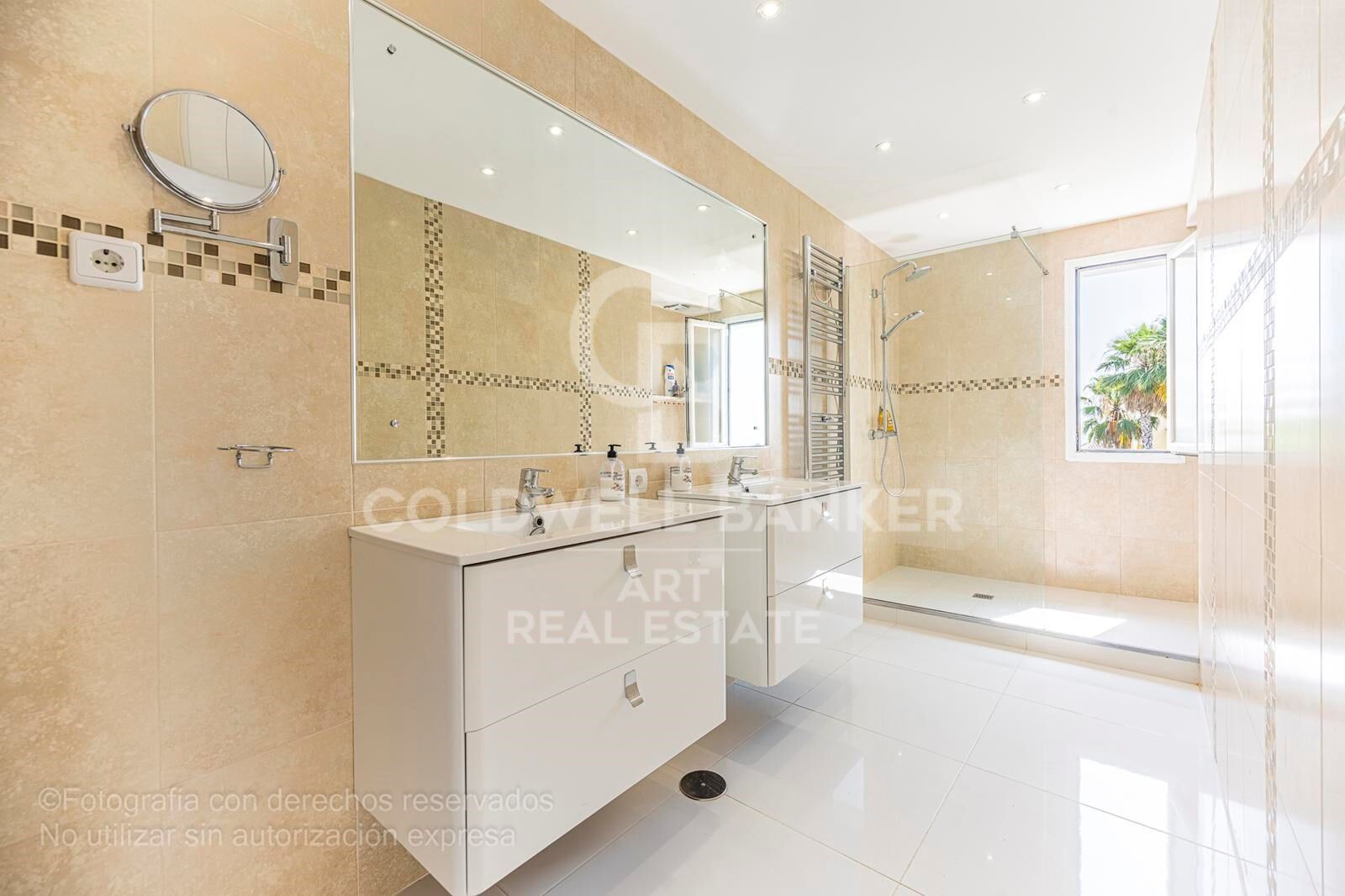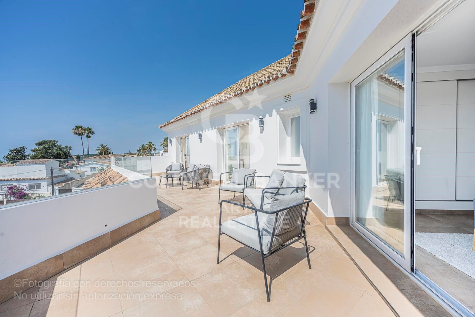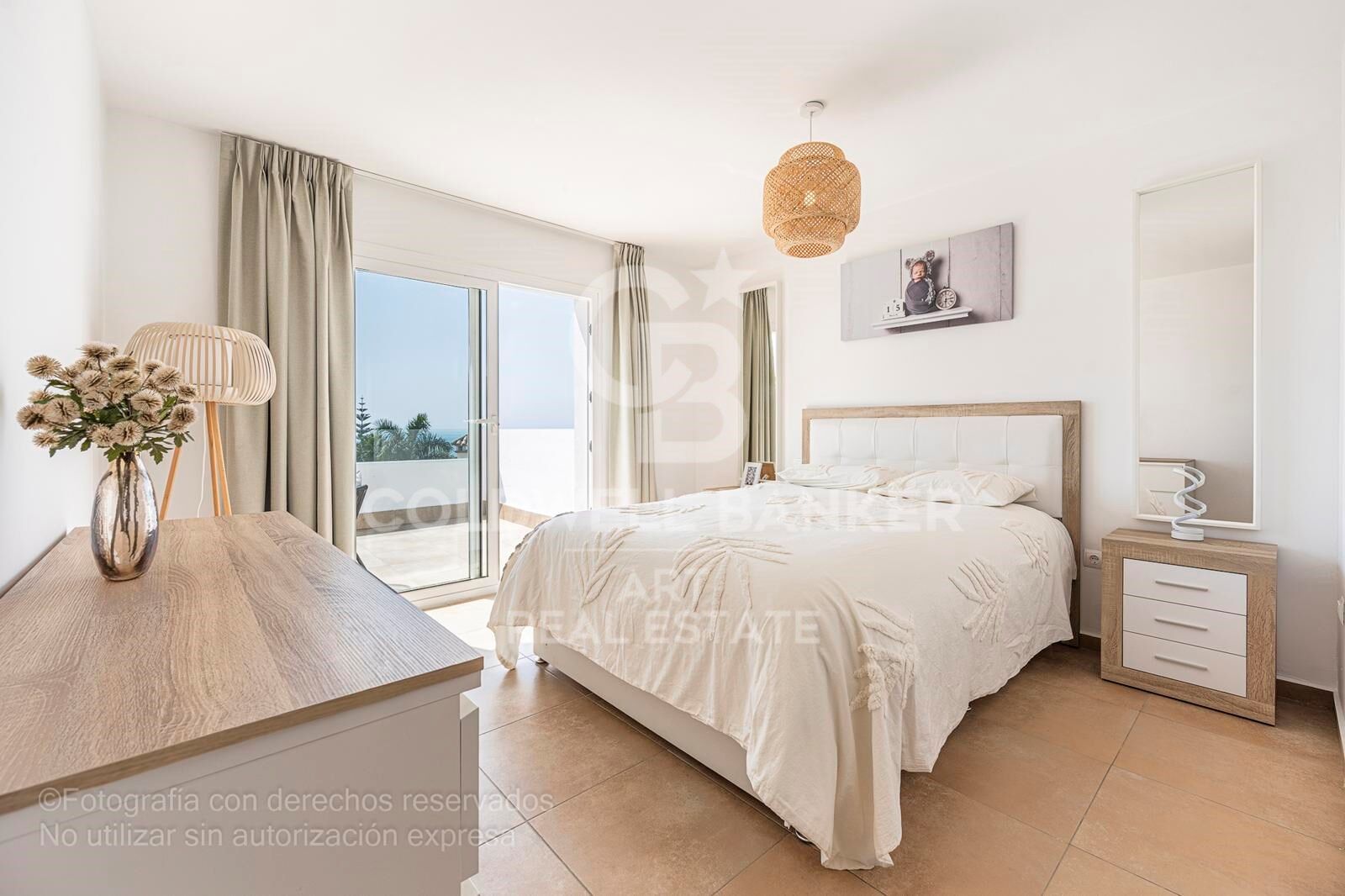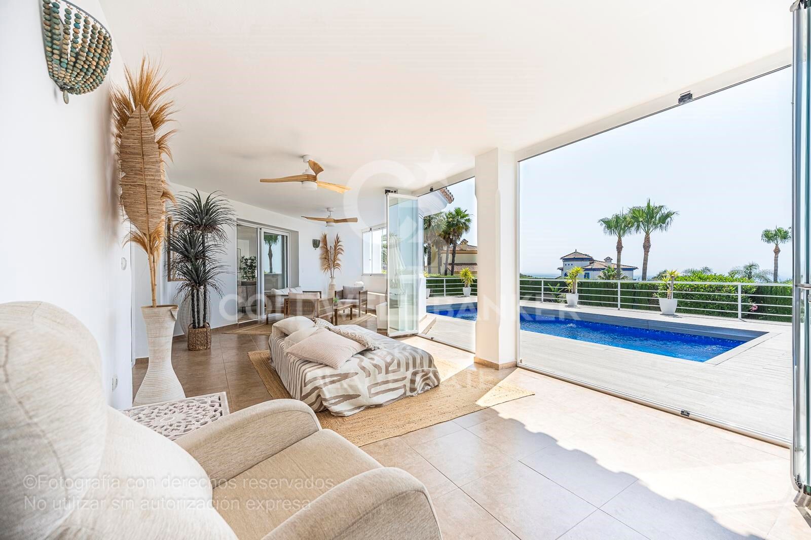 Tanto la planta baja como la superior disfrutan de vistas despejadas al mar, inundando la casa con luz natural y creando una sensación de apertura en todas partes. La villa se presenta en perfecto estado y lista para entrar a vivir, destacando por sus acabados de alta calidad, su amplia distribución y su elegante estilo mediterráneo.