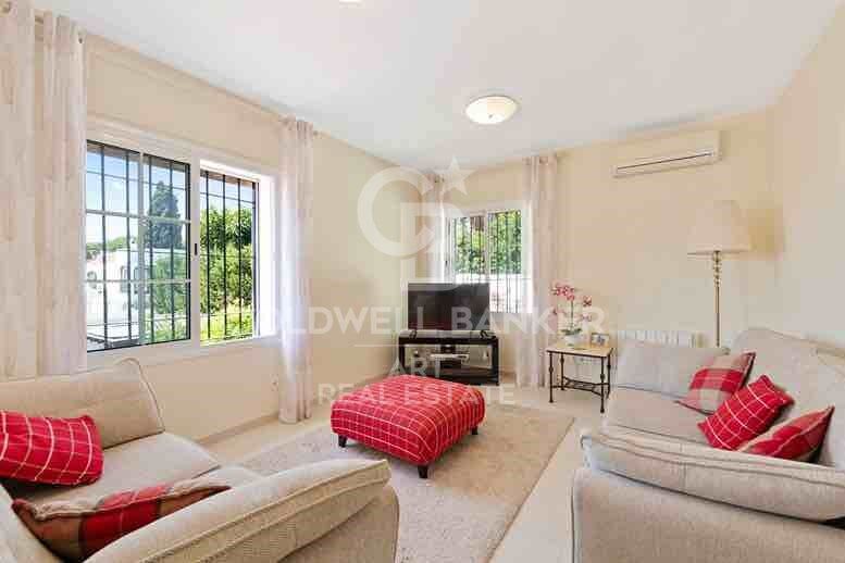 El espacioso salón es otro punto destacado de esta villa. Cuenta con grandes ventanales que inundan el espacio de luz natural, y se abre directamente a la terraza exterior. Esta conexión interior-exterior mejora la experiencia de vida en general, lo que le permite disfrutar del hermoso clima mediterráneo durante todo el año.