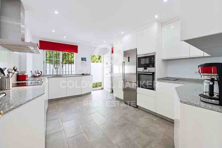 El corazón de la casa es la amplia y moderna cocina. Está equipada con electrodomésticos de alta calidad y ofrece un amplio espacio de encimera, por lo que es un sueño para los amantes de la cocina y el entretenimiento. El diseño abierto de la cocina garantiza un flujo continuo hacia las zonas de comedor y salón adyacentes, creando un entorno perfecto para celebrar reuniones o disfrutar de comidas familiares.