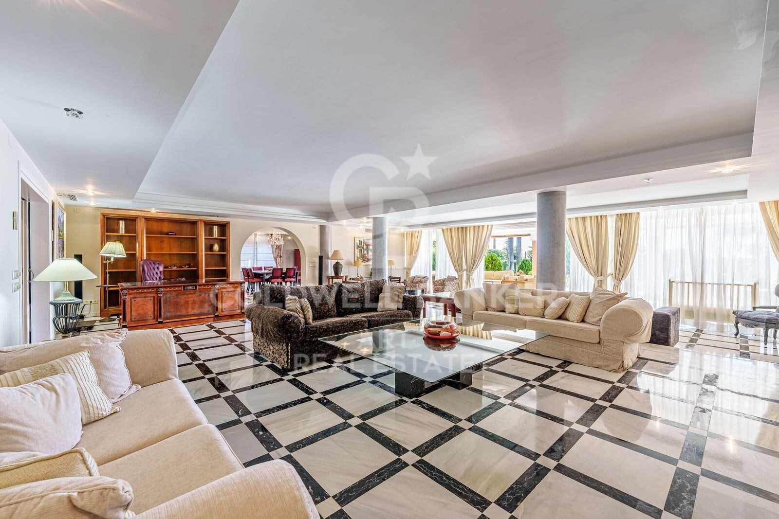 Al entrar en esta exquisita villa, será recibido por un salón espacioso y bellamente diseñado, con un sistema de sonido de última generación, TV vía satélite y un gran espacio de estar y comedor de planta abierta.