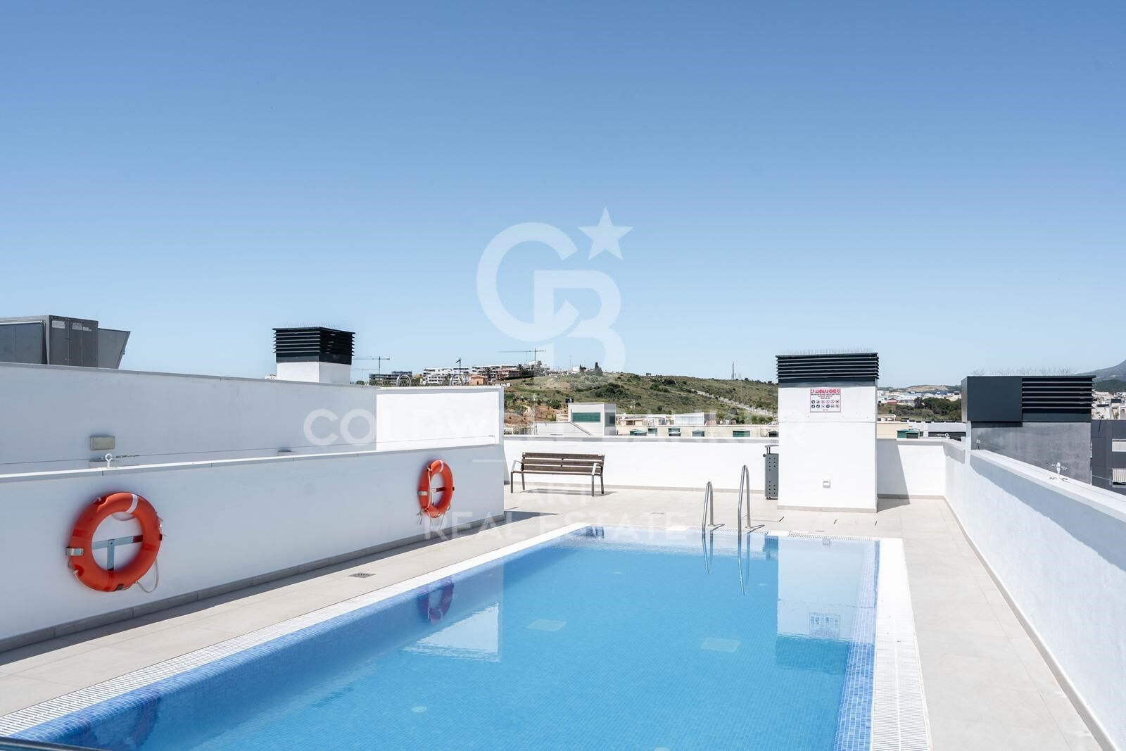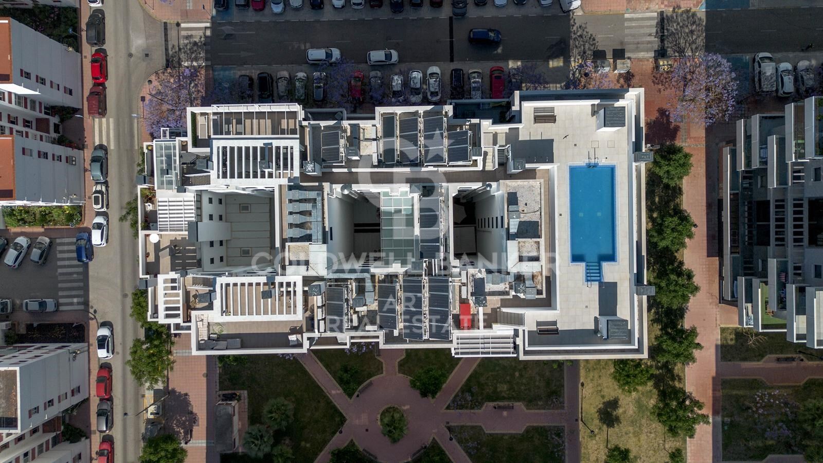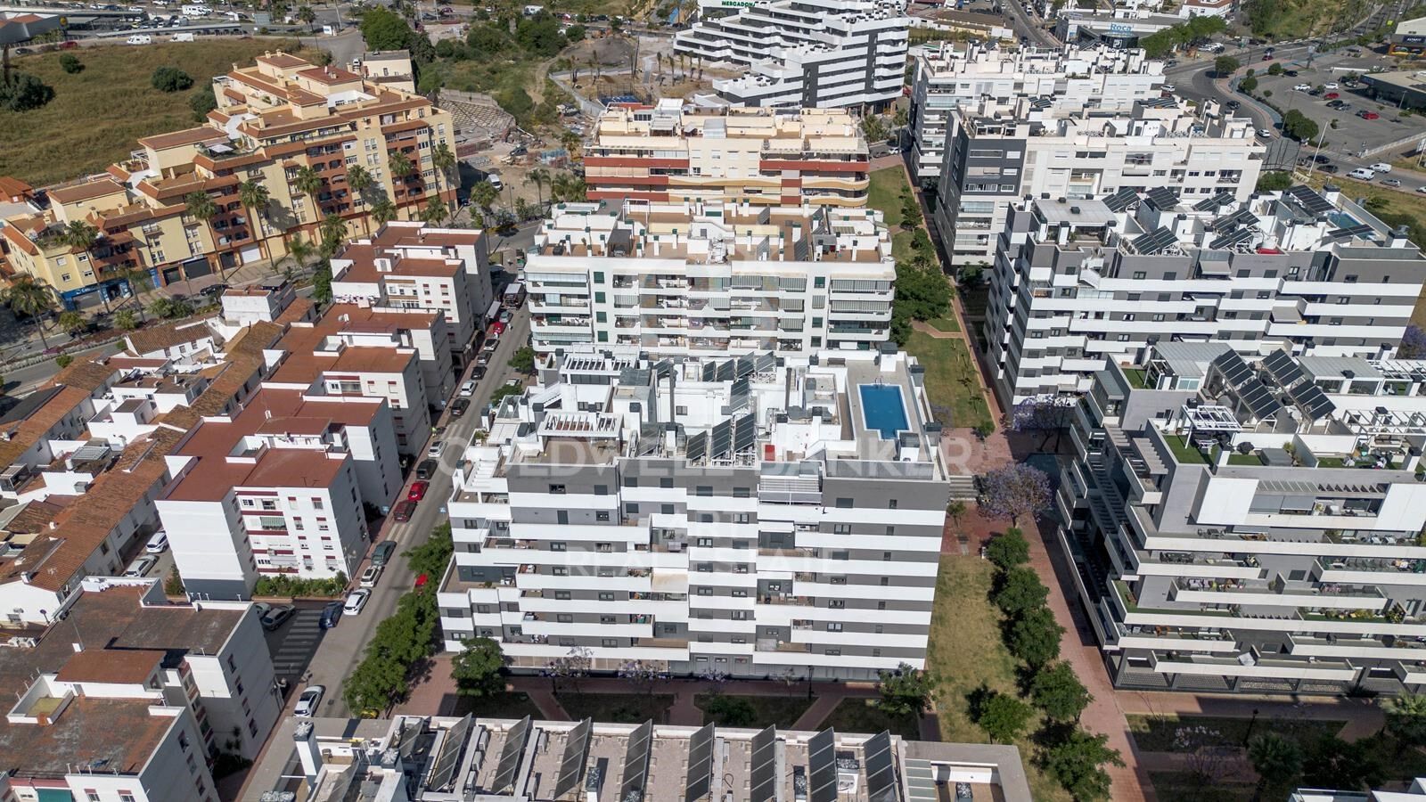 Estilo californiano en Estepona - piso nuevo de 3 dormitorios con terraza y piscina en azotea
