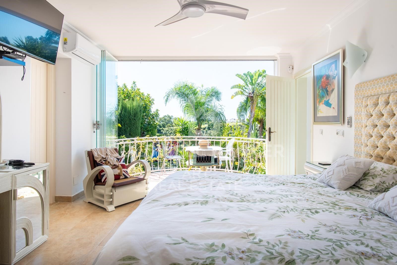 A solo 2 km del animado centro de Estepona y a 4 minutos en coche de la playa, esta villa de estilo mediterráneo ofrece el equilibrio perfecto entre tranquilidad, privacidad y comodidad.