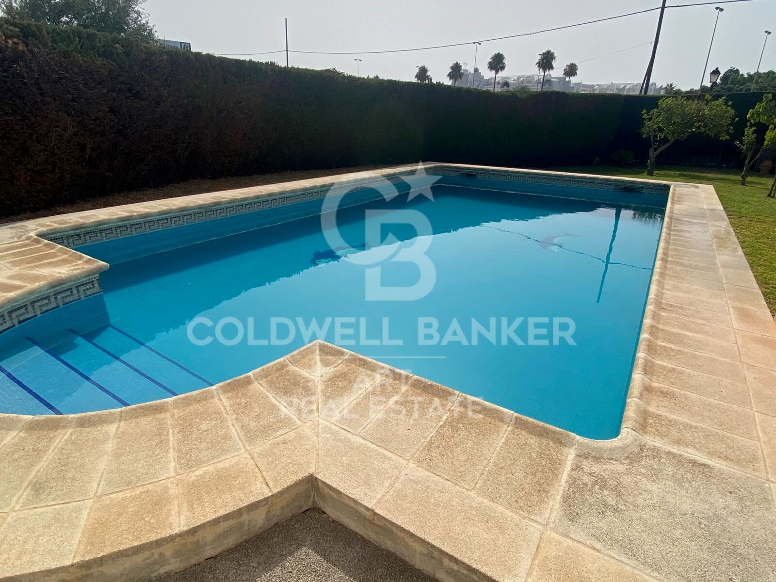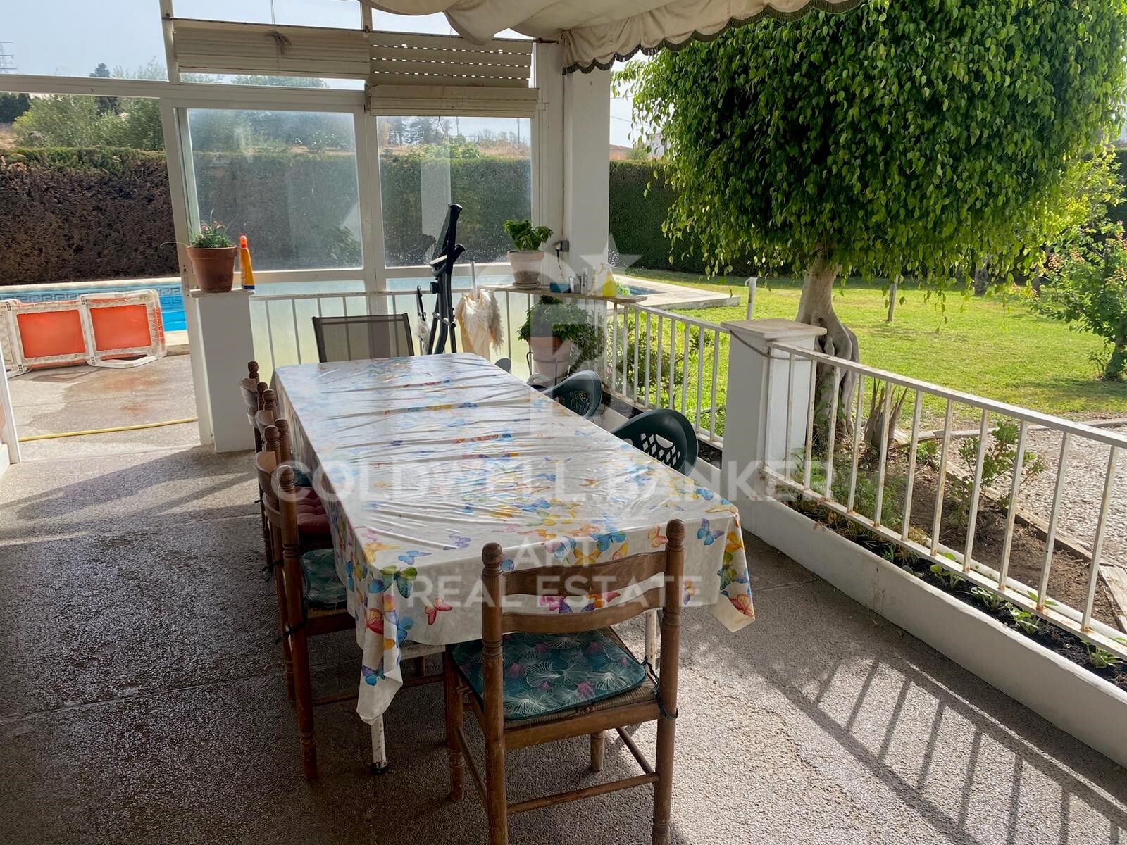 La propiedad se complementa con terrazas cubiertas, donde podrás disfrutar del clima mediterráneo y vistas relajantes al jardín y los alrededores. La piscina privada es el lugar perfecto para relajarse y disfrutar de la privacidad y tranquilidad que ofrece esta finca.