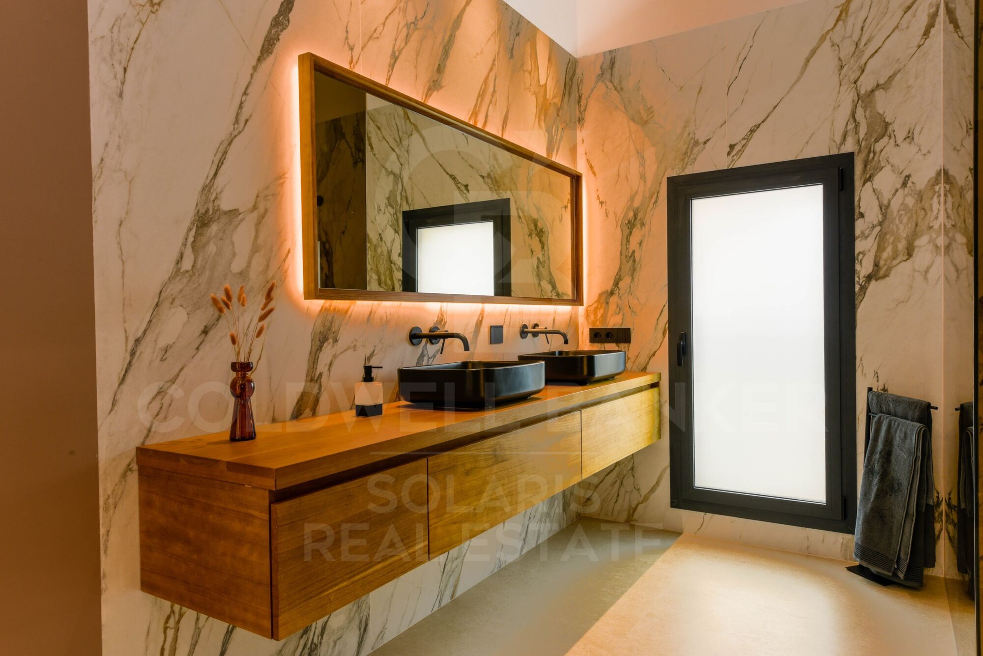 La cuisine ouverte, équipée des meilleurs appareils électroménagers et d'une sélection exquise de finitions, est le cur de cette maison, un lieu où la fonctionnalité rencontre la beauté. De plus, le chauffage au sol et la cheminée assurent une température parfaite et une atmosphère chaleureuse en toutes saisons de l'année.