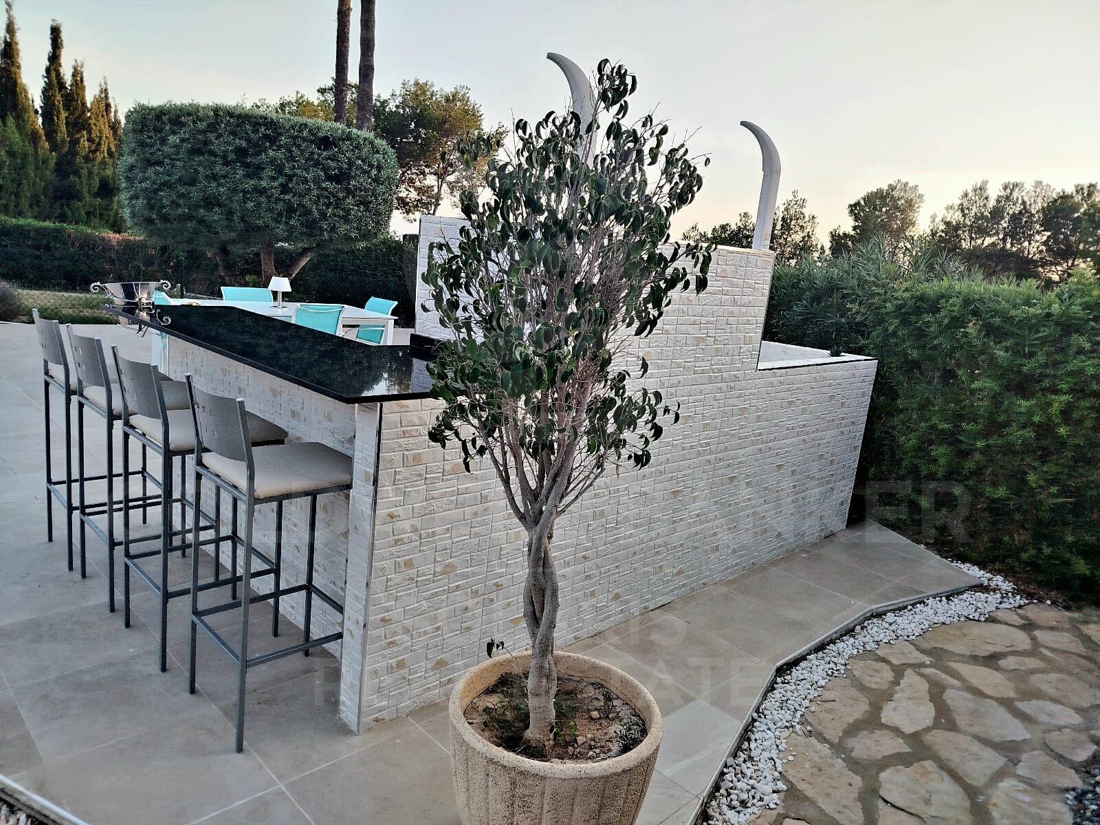 El exterior se completa con una cocina al aire libre totalmente equipada, que incluye barbacoa, fregadero y zona de comedor, perfecta para reuniones, celebraciones y eventos sociales. Todo el jardín ofrece máxima privacidad, convirtiéndose en un auténtico oasis mediterráneo.