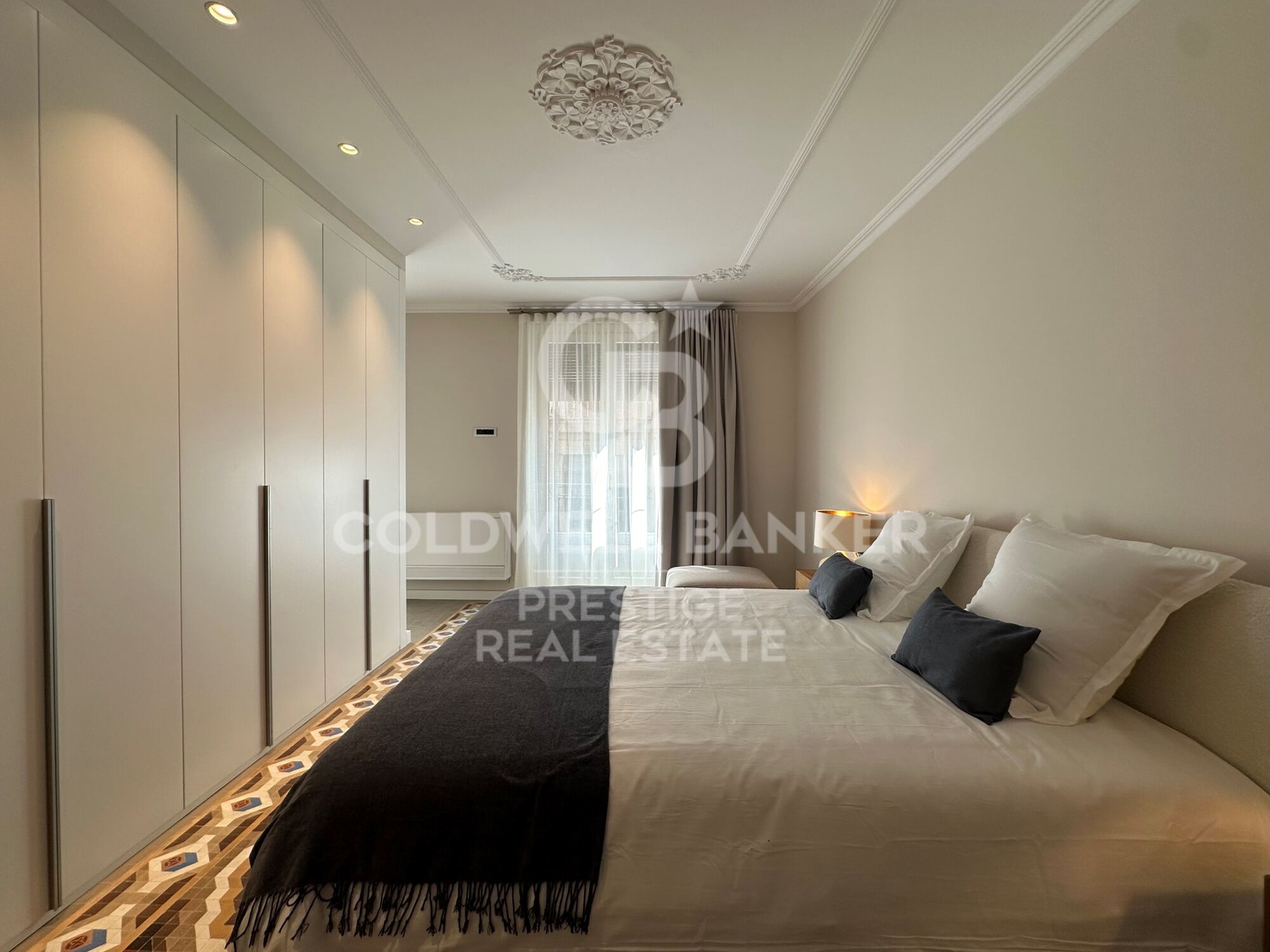 Récemment rénovée en 2023, la Casa Condeminas offre des appartements de super luxe et de très haute qualité, avec concierge, ascenseurs, espaces communs avec piscine et un espace cuisine-barbecue avec des vues fantastiques. Au troisième étage de ce bâtiment se trouve cet appartement charmant de 90 m², qui comprend une chambre principale avec salle de bains et douche, un grand salon avec deux balcons avec vue sur les coupoles, une cuisine spacieuse entièrement équipée, et un WC/laverie. Conçu dans un style loft, il dispose de portes coulissantes pour plus d'intimité, de placards intégrés, est entièrement meublé avec goût, et dispose de la climatisation, du chauffage, des sols hydrauliques originaux et des plafonds décoratifs. Une véritable uvre d'art.