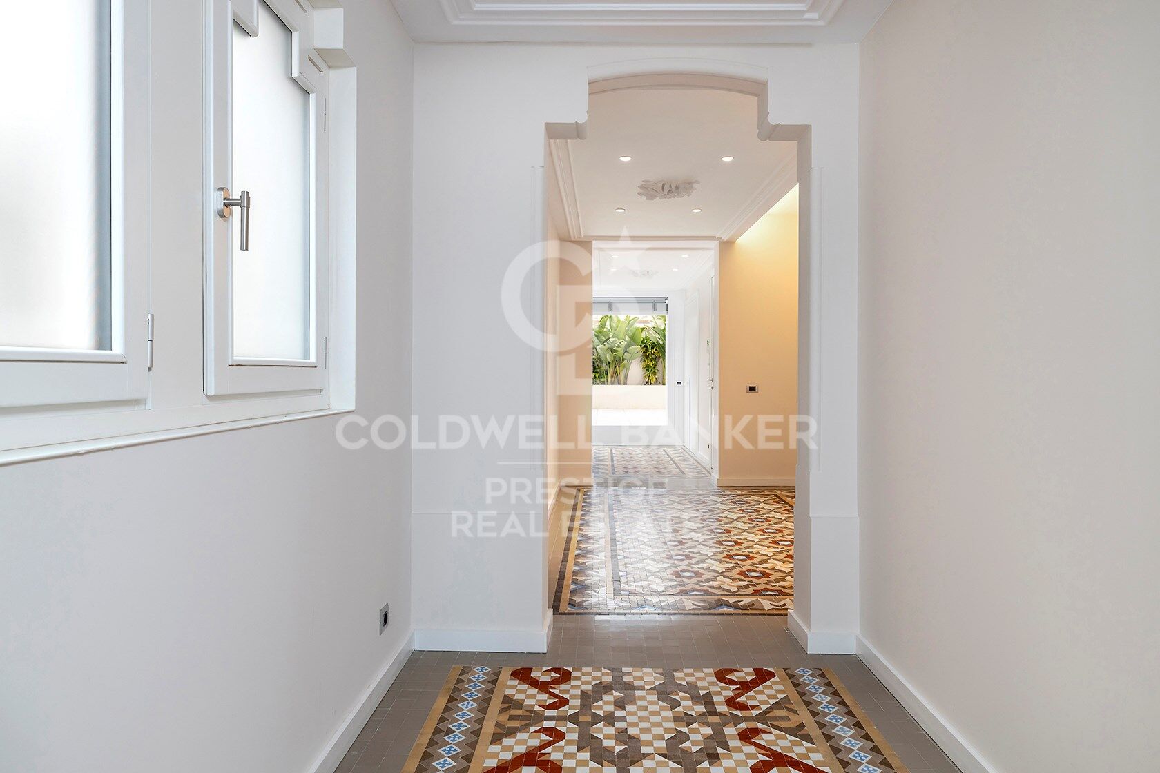 Coldwell Banker Eminent tiene el agrado de poner a su disposición esta vivienda de 85m2, totalmente reformada a nuevo, ubicada a escasos metros de La Rambla, en pleno corazón del Barrio Gótico. . . Se trata de la restauración de dos pisos ubicados en la segunda planta de un edificio del Siglo XVIII que conserva restos de un antiguo edificio de los siglos XV y XVI, el cual fue la sede de la procuraduría de Montserrat en Barcelona. La reforma ha sido realizada con materiales de alta calidad, cuidando los materiales originales y resaltando su belleza u esplendor original. El Departamento de Patrimonio de Barcelona ha supervisado y aprobado las obras, así encontramos suelos hidráulicos originales restaurados, pinturas originales en los techos y en algunas paredes se puede apreciar la piedra original. . . La entrada del edificio se encuentra en una calle peatonal privada a la que sólo pueden acceder los residentes de los pisos que quedan dentro, lo cual garantiza privacidad y tranquilidad.. . Los techos son de 4,5 metros de altura y se ha podido conservar la volta catalana decorada original, y las ventanas alcanzan una altura de 3,20 metros lo cual brinda mucha luz natural en cada ambiente ya que todas las habitaciones tienen ventanas exteriores. Las puertas y ventanas se han restaurado y se les ha ha puesto cristales dobles climalit para mejorar el rendimiento energético, conservando tanto el frío como el calor según la época del año. . Todas las instalaciones eléctricas y de cañerías son nuevas y se ha instalado un sistema de climatización para todas las estancias de la vivienda. . La idea de este proyecto ha sido respetar la historia del edificio agregando tecnología y confort actuales. . . La cocina americana está integrada y totalmente equipada con horno, horno microondas, y lavavajillas. . El baño posee una amplia ducha con hidromasaje, y estantería empotrada. Mediante el salón comedor se accede a una terraza privada de 7m2. . . Las dos habitaciones dobles permiten organizar un espacio confortable para el relax y el descanso. Ambas dan a una pasaje muy tranquilo, lo cual genera una atmósfera bucólica. . Hay un trastero espacioso y alto con conexión para la lavadora y espacio para almacenamiento.. . El salón cuenta con una hermosa ventana a una de las esculturas de la fachada del edificio.. . Todas las instalaciones son nuevas, y un sistema de aire acondicionado por conducto en todas las habitaciones garantiza la temperatura perfecta durante todo el año.. . Si quiere adquirir una propiedad única, en una ubicación inmejorable, no dude en concertar una visita con nosotros. Estamos a su disposición #ref:CBE-0248