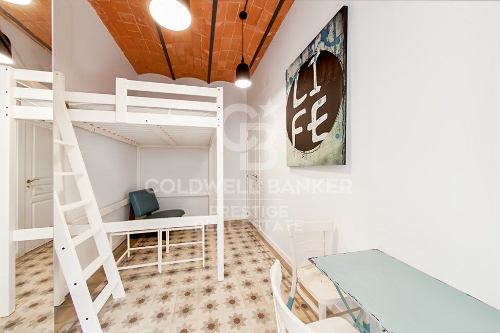 Le logement conserve une superficie généreuse et une structure qui permet de repenser facilement les espaces pour les adapter aux besoins d'une famille. Avec un changement d'agencement, il peut être transformé en un appartement lumineux avec trois grandes chambres doubles, deux salles de bains complètes, des toilettes, une buanderie et un grand salon-salle à manger donnant sur la rue Rosselló, tandis que la zone nuit serait orientée vers la cour intérieure calme, garantissant tranquillité et intimité.