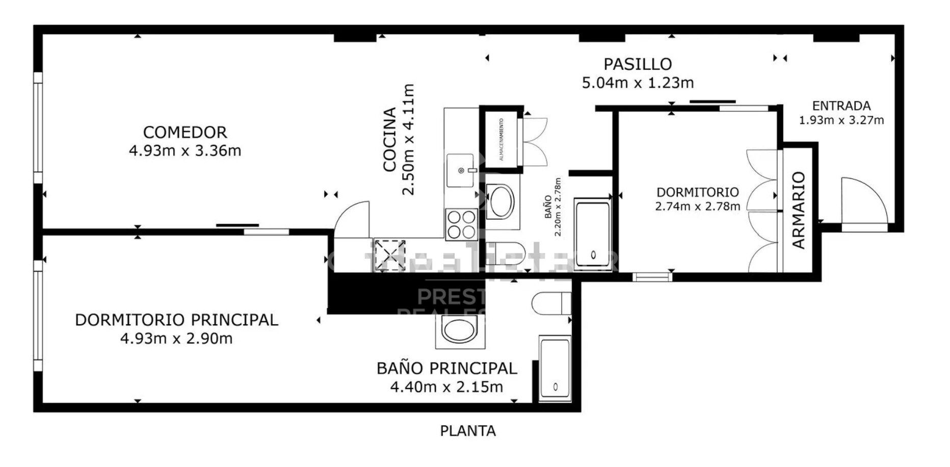 Cet appartement dispose d'une cuisine intégrée, ouverte, de style américain, qui reflète une touche de vie moderne, idéale pour profiter de repas en famille et entre amis. Deux chambres doubles, dont une en suite avec dressing et une deuxième chambre double avec placards et une salle de bain complète.